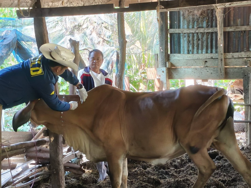 วันที่ 29 พฤศจิกายน 2568 นางสาวเยาวนิตย์ บุรีรักษา ปศุสัตว์เขต 4 มอบหมายให้ชุดเฉพาะกิจชุดที่ 1 ตามคำสั่งสำนักงานปศุสัตวฺเขต 4 ที่ 78/2568 บูรณาการร่วมกับเจ้าหน้าที่จากสำนักงานปศุสัตว์อำเภอชุมพลบุรี จังหวัดสุรินทร์ ปฏิบัติงานหน่วยสัตวแพทย์เคลื่อนที่เพื่อดูแลและฟื้นฟูสุขภาพสัตว์ในพื้นที่ตำบลศรีณรงค์ อำเภอชุมพลบุรี จังหวัดสุรินทร์ โดยปฏิบัติงานดูแลสุขภาพสัตว์และดำเนินการฉีดวัคซีนป้องกันโรคปากและเท้าเปื่อย ดังนี้