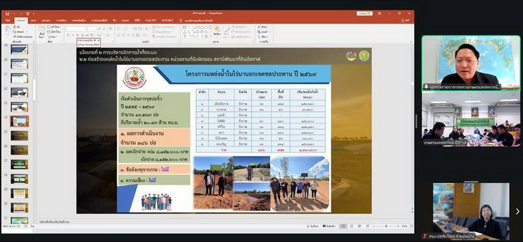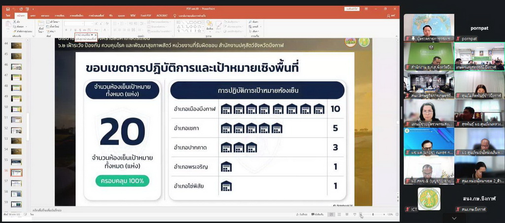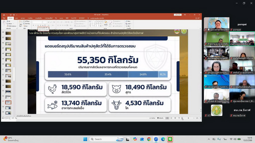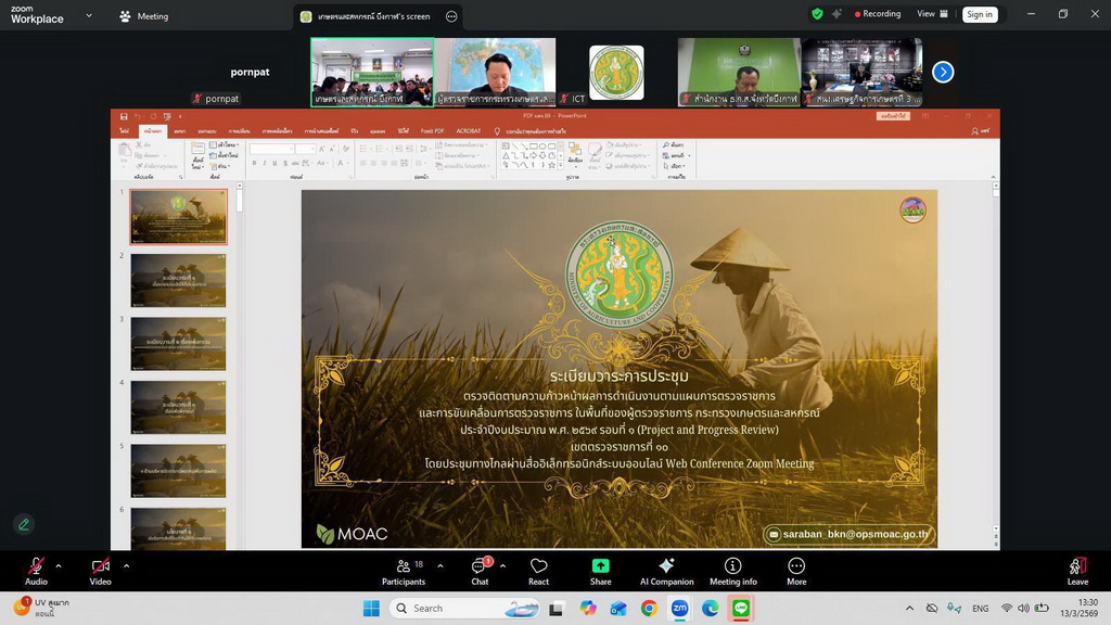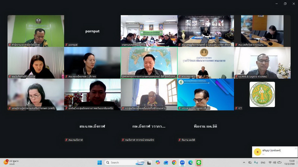 วันที่ 13 มีนาคม 2569 เวลา 13.00 - 15.00 น. น.ส.เยาวนิตย์ บุรีรักษา ปศุสัตว์เขต 4 มอบหมายให้ นางนารีนัตท์ฏา ตรงคง ตำแหน่ง นักวิเคราะห์นโยบายและแผนชำนาญการพิเศษ รักษาราชการ ผอ.ส่วนยุทธศาสตร์และสารสนเทศการปศุสัตว์ สำนักงานปศุสัตว์เขต 4 เป็นผู้แทนในการประชุมตรวจติดตามผลการดำเนินงานโครงการตามแผนการตรวจราชการของผู้ตรวจราชการกระทรวงเกษตรและสหกรณ์ ประจำปีงบประมาณ พ.ศ. 2569 รอบที่ 1 เขตตรวจราชการที่ 10 (นายธิติ โลหะปิยะพรรณ) เพื่อตรวจติดตามความก้าวหน้า ปัญหาอุปสรรค และข้อเสนอแนะในการดำเนินงานตามนโยบายกระทรวงเกษตรและสหกรณ์ ร่วมกับหัวหน้าส่วนราชการในสังกัดกระทรวงเกษตรและสหกรณ์ในพื้นที่จังหวัดบึงกาฬ ผ่านระบบประชุมทางไกล Zoom Meeting โดยมี นายธิติ โลหะปิยะพรรณ ผู้ตรวจราชการกระทรวงเกษตรและสหกรณ์ เขตตรวจราชการที่ 10 เป็นประธานการประชุม