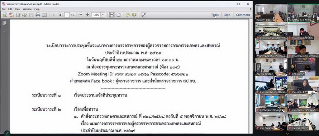 ผ่านระบบประชุมทางไกล (Zoom Meeting) ณ ห้องประชุมพระลับ สำนักงานปศุสัตว์เขต 4 ตำบลท่าพระ อำเภอเมือง จังหวัดขอนแก่น โดยมีนางสาวอิงอร ปัญญากิจ หัวหน้าผู้ตรวจราชการกระทรวงเกษตรและสหกรณ์ เป็นประธานในการประชุม