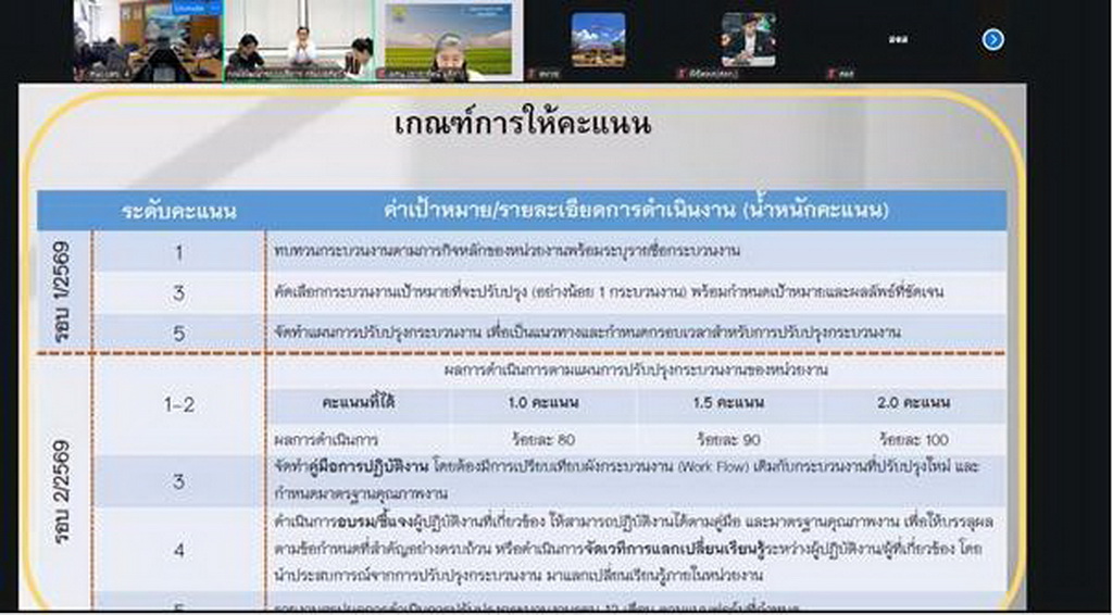 วันพุธที่ 14 มกราคม 2569 เวลา 10.00 น. นางสาวเยาวนิตย์ บุรีรักษา ปศุสัตว์เขต 4 มอบหมายให้ผู้อำนวยการส่วนฯ/หัวหน้าฝ่ายฯ และเจ้าหน้าที่ที่เกี่ยวข้อง เข้าร่วมประชุมชี้แจงรายละเอียดตัวชี้วัดรายบุคคล ด้านการปรับปรุงกระบวนงานตามตัวชี้วัด "ระดับความสำเร็จของการปรับปรุงกระบวนงาน" ประจำปีงบประมาณ พ.ศ. 2569 ผ่านระบบประชุมทางไกล (Zoom Meeting) ณ ห้องประชุมพระลับ สำนักงานปศุสัตว์เขต 4 ตำบลท่าพระ อำเภอเมือง จังหวัดขอนแก่น โดยมีนายสมเกียรติ กรอบแก้ว หัวหน้ากลุ่มพัฒนาระบบบริหารเป็นประธานในการประชุม