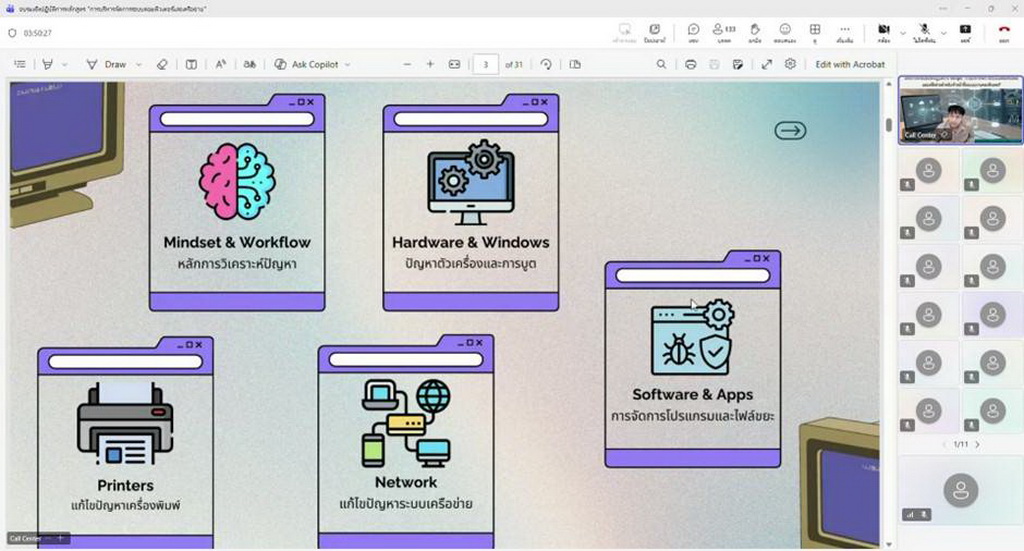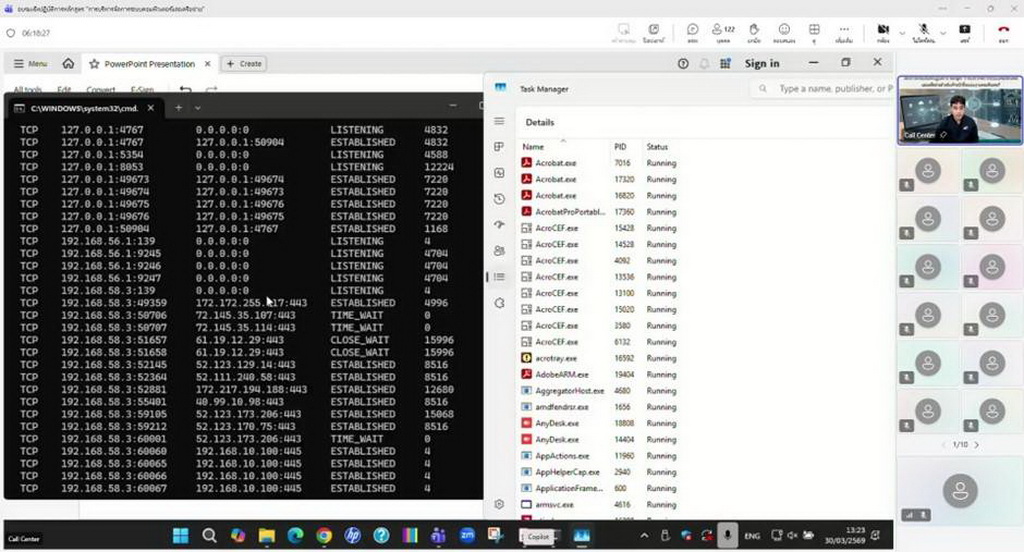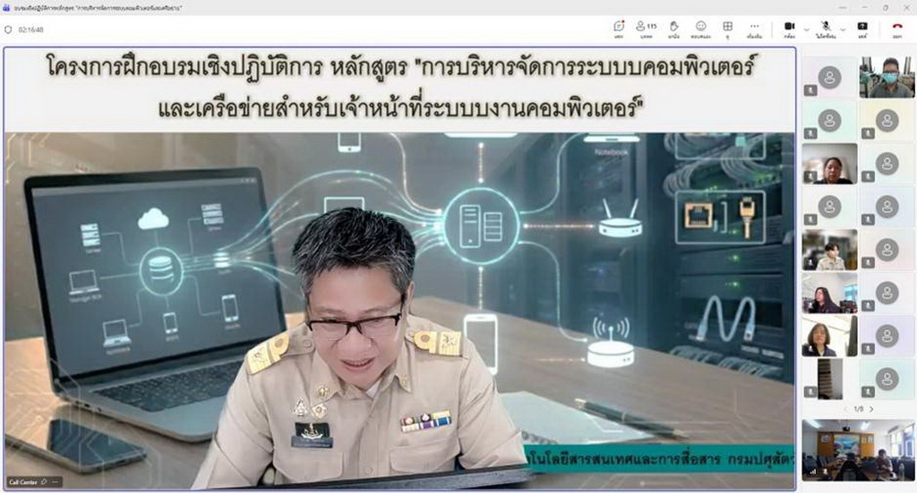 วันจันทร์ที่ 30 มีนาคม 2569 เวลา 08.30 น. นางสาวเยาวนิตย์ บุรีรักษา ปศุสัตว์เขต 4 มอบหมายให้นายบรรจง มูลตรีดี เจ้าหน้าที่ระบบงานคอมพิวเตอร์ เข้าร่วมฝึกอบรมเชิงปฏิบัติการหลักสูตร การบริหารจัดการระบบคอมพิวเตอร์และเครือข่าย สำหรับเจ้าหน้าที่ระบบงานคอมพิวเตอร์ เพื่อให้เจ้าหน้าที่ผู้ปฏิบัติงานด้านเทคโนโลยีสารสนเทศ ศึกษาเรียนรู้ เพิ่มพูนทักษะ แนวทางการแก้ไข และป้องกันปัญหาของระบบเครือข่ายอินเตอร์เน็ต ผ่านระบบประชุมทางไกล (Microsoft Teams) ณ ห้องประชุมพระลับ สำนักงานปศุสัตว์เขต 4 ตำบลท่าพระ อำเภอเมือง จังหวัดขอนแก่น โดยมีนายสัตวแพทย์จิระวุฒิ จันทร์งาม ผู้อำนวยการศูนย์เทคโนโลยีสารสนเทศและการสื่อสาร เป็นประธานในการประชุม