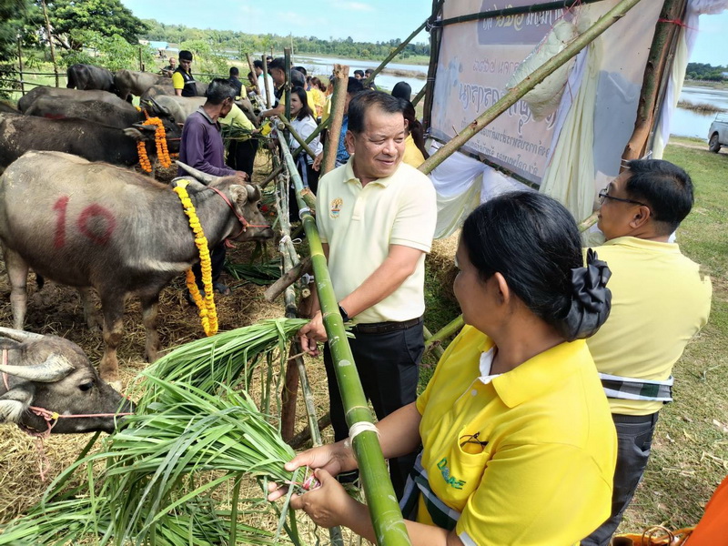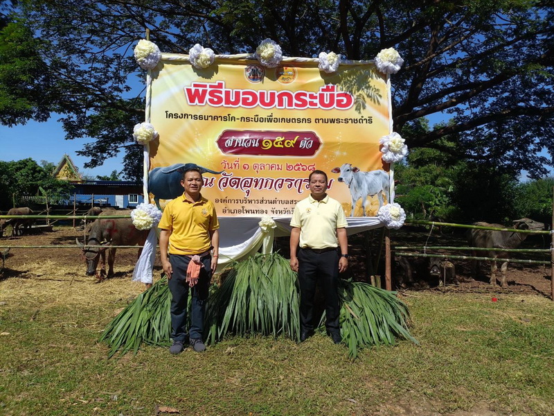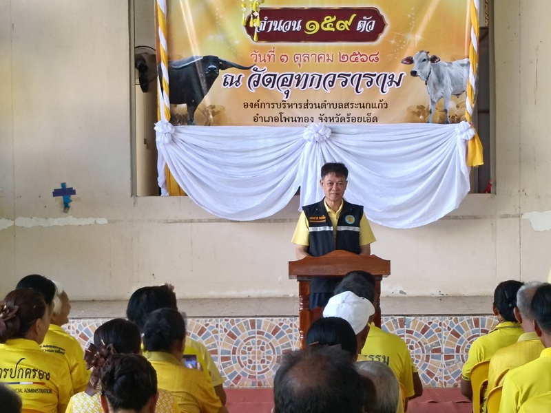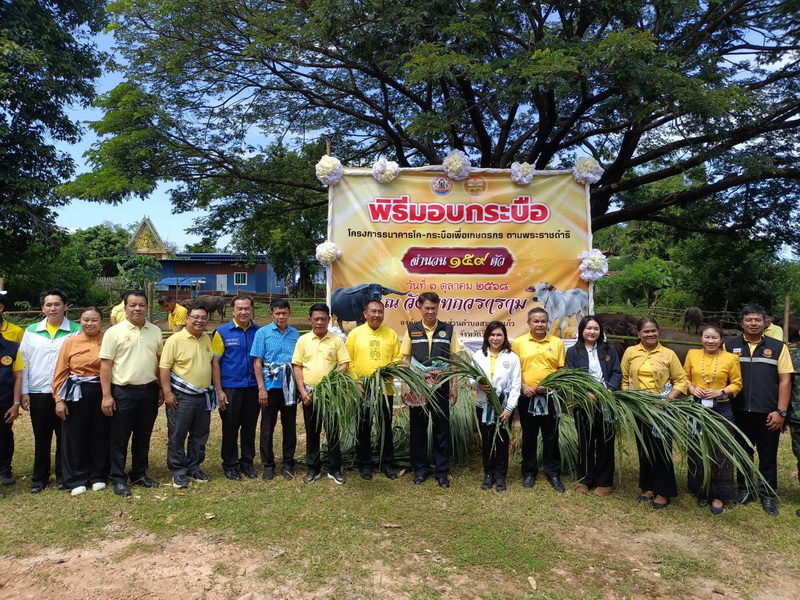 วันศุกร์ ที่ 3 ตุลาคม 2568 นางสาวเยาวนิตย์ บุรีรักษา ปศุสัตว์เขต 4 มอบหมายให้ นายอิทธิพัทธ์ จำรัสบุญหิรัญ ผู้อำนวยการส่วนส่งเสริมและพัฒนาการปศุสัตว์ สำนักงานปศุสัตว์เขต 4 เข้าร่วมเป็นเกียรติในพิธีมอบโค-กระบือ ตามโครงการธนาคารโค-กระบือเพื่อเกษตรกร ตามพระราชดำริ จำนวน 159 ตัว และมอบเวชภัณฑ์ จำนวน 159 ชุด โดยได้รับเกียรติจาก ดร.เอกภาพ พลซื่อ โฆษกกระทรวงเกษตรและสหกรณ์ เป็นประธานในพิธี และมีเจ้าหน้าที่จากหน่วยงานในสังกัดกระทรวงเกษตรและสหกรณ์เข้าร่วมพิธีฯ โดยพร้อมเพรียง ณ วัดอุทกวราราม ตำบลสระนกแก้ว อำเภอโพนทอง จังหวัดร้อยเอ็ด
