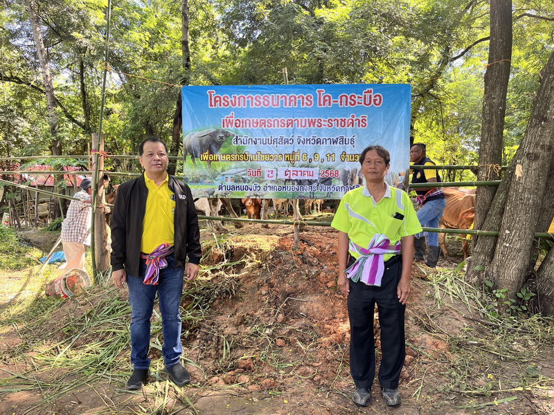 วันอาทิตย์ ที่ 5 ตุลาคม 2568 นางสาวเยาวนิตย์ บุรีรักษา ปศุสัตว์เขต 4 มอบหมายให้ นายอิทธิพัทธ์ จำรัสบุญหิรัญ ผู้อำนวยการส่วนส่งเสริมและพัฒนาการปศุสัตว์ สำนักงานปศุสัตว์เขต 4 เข้าร่วมเป็นเกียรติในพิธีมอบโคตามโครงการธนาคารโค-กระบือเพื่อเกษตรกร ตามพระราชดำริ จำนวน 60 ตัว และมอบหญ้าแห้ง เวชภัณฑ์ จำนวน 60 ชุด โดยได้รับเกียรติจาก นายจำลอง ภูนวนทา สมาชิกสภาผู้แทนราษฎร เป็นประธานในพิธี มีนายวีระสันติ ประทุมพล ผู้อำนวยการสำนักพัฒนาอาหารสัตว์ และเจ้าหน้าที่จากส่วนราชการจังหวัดกาฬสินธุ์และอำเภอหนองกุงศรี เข้าร่วมพิธีฯ โดยพร้อมเพรียง ณ บ้านไชยวาร ตำบลหนอบัว อำเภอหนองกุุงศรี จังหวัดกาฬสินธุ์