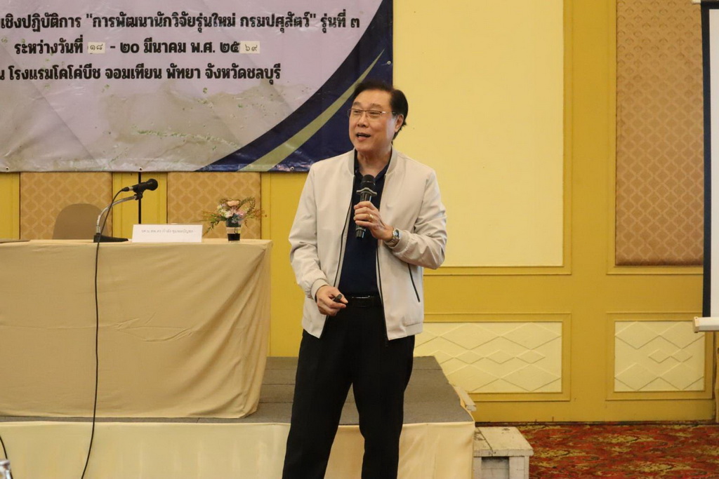 วันที่ 18 - 20 มีนาคม 2569 นางสาวเยาวนิตย์ บุรีรักษา ปศุสัตว์เขต 4 มอบหมายให้เจ้าหน้าที่ส่วนส่งเสริมและพัฒนาการปศุสัตว์ สำนักงานปศุสัตว์เขต 4 เข้าร่วมโครงการอบรมเชิงปฏิบัติการ หลักสูตร "การพัฒนานักวิจัยรุ่นใหม่ กรมปศุสัตว์" รุ่นที่ 3 ณ โรงแรมโคโค่บีช จอมเทียน พัทยา จังหวัดชลบุรี เพื่อพัฒนาองค์ความรู้และเสริมสร้างทักษะการเขียนงานวิจัยให้มีประสิทธิภาพมากยิ่งขึ้น
