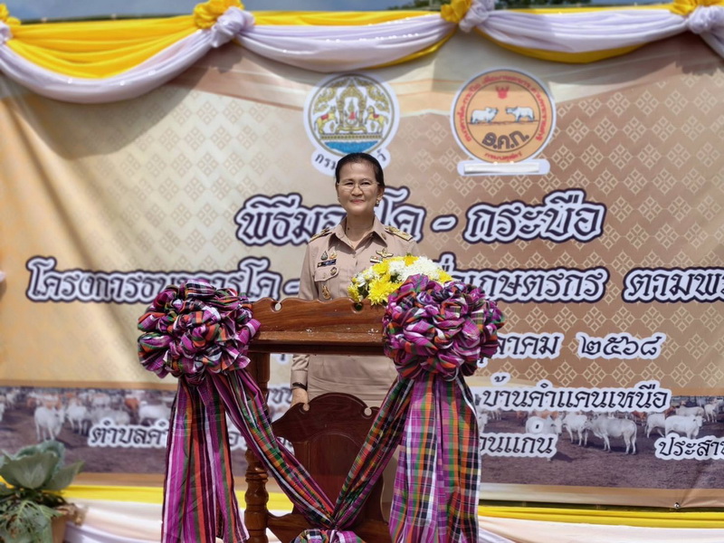 วันพฤหัสบดี ที่ 30 ตุลาคม 2568 นางสาวเยาวนิตย์ บุรีรักษา ปศุสัตว์เขต 4 เป็นประธานในพิธีมอบโค ตามโครงการธนาคารโค-กระบือ เพื่อเกษตรกร ตามพระราชดำริ จำนวน 35 ตัว พร้อมด้วยเวชภัณฑ์ จำนวน 35 ชุด ให้กับเกษตรกรในพื้นที่อำเภอมัญจาคีรี จังหวัดขอนแก่น จำนวน 35 ราย โดยมี นายคฤทธิ์ เพ็ชรสูงเนิน นายอำเภอมัญจาคีรี ให้เกียรติเข้าร่วมในพิธี พร้อมทั้งมีนายอิทธิพัทธ์ จำรัสบุญหิรัญ ผู้อำนวยการส่วนส่งเสริมและพัฒนาการปศุสัตว์ สำนักงานปศุสัตว์เขต 4 นายชนินทร์ น่าชม นายสัตวแพทย์ชำนาญการพิเศษ รักษาการปศุสัตว์จังหวัดขอนแก่น นายวชิระ สุวรรณขิน ปศุสัตว์อำเภอมัญจาคีรี นางสาวนันฐิยา สิริกาญธนานันท์ ประธานมูลนิธิก่อการดี เจ้าหน้าที่จากสำนักงานปศุสัตว์เขต 4 และเจ้าหน้าที่สำนักงานปศุสัตว์จังหวัดขอนแก่น เข้าร่วมพิธีฯโดยพร้อมเพรียงในครั้งนี้ด้วย ณ ศูนย์เรียนรู้ชุมชนก่อการดีแห่งที่ 3 บ้านคำแคนเหนือ ตำบลคำแคน อำเภอมัญจาคีรี จังหวัดขอนแก่น