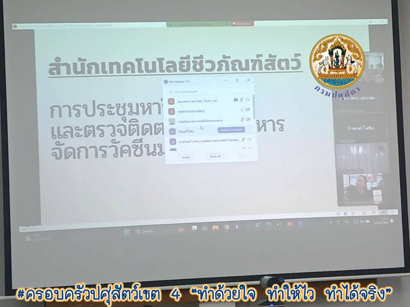 วันที่ 12 พฤศจิกายน 2568 นางสาวเยาวนิตย์ บุรีรักษา ปศุสัตว์เขต 4 มอบหมายส่วนสุขภาพสัตว์ 4 ร่วมกับสำนักเทคโนโลยีชีวภัณฑ์สัตว์จัดการประชุมหารือและตรวจติดตามการบริหารจัดการวัคซีนและสำรวจตู้เย็นในระบบห่วงโซ่ความเย็นในพื้นที่สำนักงานปศุสัตว์เขต 4 ผ่านระบบประชุมทางไกล (Zoom Conference) โดยผู้เข้าร่วมประกอบด้วยหัวหน้ากลุ่มพัฒนาสุขภาพสัตว์หรือตัวแทนของสำนักงานปศุสัตว์ในพื้นที่รับผิดชอบ จำนวน 12 จังหวัด ทั้งนี้ เพื่อหารือปัญหาและอุปสรรคในการบริหารจัดการวัคซีน การสำรวจและยืนยันความต้องการตู้เย็นในระบบห่วงโซ่ความเย็นของสำนักงานปศุสัตว์จังหวัดในพื้นที่ เพื่อเป็นแนวทางให้สำนักเทคโนโลยีชีวภัณฑ์สัตว์จัดสรรให้เพียงพอและช่วยส่งเสริมระบบห่วงโซ่ความเย็นให้มีประสิทธิภาพมากยิ่งขึ้น