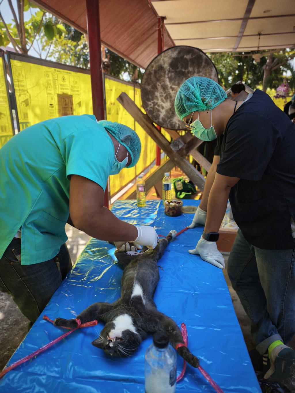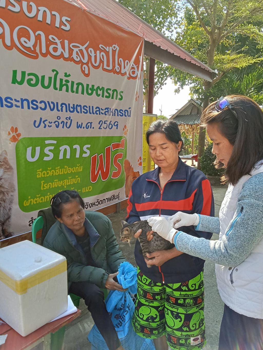 วันที่ 18 มกราคม 2569 นางสาวเยาวนิตย์ บุรีรักษา ปศุสัตว์เขต 4 มอบหมายให้เจ้าหน้าที่ส่วนสุขภาพสัตว์ สำนักงานปศุสัตว์เขต 4 ร่วมกับสำนักงานปศุสัตว์จังหวัดกาฬสินธุ์ สำนักงานปศุสัตว์อำเภอหนองกุงศรี, สำนักงานปศุสัตว์อำเภอยางตลาด, สำนักงานปศุสัตว์อำเภอห้วยเม็ก, และสำนักงานปศุสัตว์อำเภอท่าคันโท ร่วมดำเนินโครงการส่งความสุขปีใหม่ มอบให้เกษตรกร กระทรวงเกษตรและสหกรณ์ ปีงบประมาณ พ.ศ. 2569 โดยมีกิจกรรมฉีดวัคซีนป้องกันโรคพิษสุนัขบ้าและผ่าตัดทำหมันให้กับสุนัข-แมว ณ วัดบ้านโนนศิลา ตำบลหนองกุงศรี อำเภอหนองกุงศรี จังหวัดกาฬสินธุ์