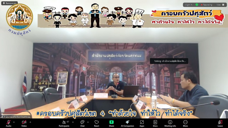 วันที่ 14 พฤศจิกายน 2568 นางสาวเยาวนิตย์ บุรีรักษา ปศุสัตว์เขต 4 มอบหมายให้เจ้าหน้าที่ส่วนสุขภาพสัตว์ เข้าร่วมประชุมหารือแนวทางการพิจารณายกเว้นค่าคำขออื่นๆ ตาม พ.ร.บ.โรคระบาดสัตว์ พ.ศ. 2558 ผ่านระบบประชุมทางไกล (Zoom Conference) โดยสำนักควบคุม ป้องกัน และบำบัดโรคสัตว์ ร่วมกับสำนักงานปศุสัตว์เขต 1 – 9 กองสารวัตรและกักกันสัตว์ สำนักงานปศุสัตว์พื้นที่กรุงเทพมหานคร ด่านกักกันสัตว์และสำนักงานปศุสัตว์จังหวัดพื้นที่เป้าหมาย เพื่อหารือในประเด็นปัญหาและอุปสรรคเกี่ยวกับการจัดเก็บค่าคำขออื่นๆ ตาม พ.ร.บ.โรคระบาดสัตว์ พ.ศ. 2558 เป็นการระดมความคิดเห็นของเจ้าหน้าที่ผู้ที่มีส่วนเกี่ยวข้องและผู้ปฏิบัติงานในพื้นที่