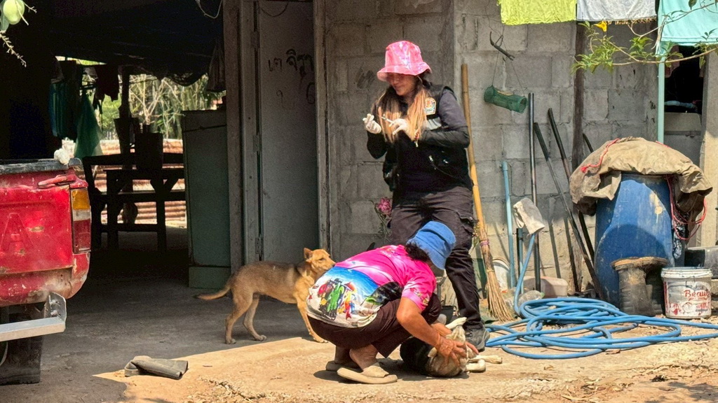 วันที่ 18 มีนาคม 2569 นางสาวเยาวนิตย์ บุรีรักษา ปศุสัตว์เขต 4 มอบหมายให้เจ้าหน้าที่ส่วนสุขภาพสัตว์ สำนักงานปศุสัตว์เขต 4 ร่วมปฏิบัติงานการควบคุมโรคพิษสุนัขบ้าในสัตว์ในพื้นที่อำเภอน้ำพอง จังหวัดขอนแก่น ร่วมกับเจ้าหน้าที่จาก ด่านกักกันสัตว์จังหวัดขอนแก่น สำนักงานปศุสัตว์จังหวัดขอนแก่น และสำนักงานปศุสัตว์อำเภอน้ำพอง โดยดำเนินการลงพื้นที่สอบสวนโรคในสัตว์สัมผัส/สัตว์กลุ่มเสี่ยง/สัตว์สงสัยโรคพิษสุนัขบ้า เพื่อค้นหาสัตว์ป่วยเพิ่มเติมในชุมชน และลงพื้นที่ฉีดวัคซีนป้องกันโรคพิษสุนัขบ้าในสัตว์มีเจ้าของและในสัตว์ที่จับไม่ได้ในพื้นที่สาธารณะ รวมจำนวนทั้งสิ้น 314 ตัว เป็นสุนัขจำนวน 214 ตัว และแมวจำนวน 100 ตัว