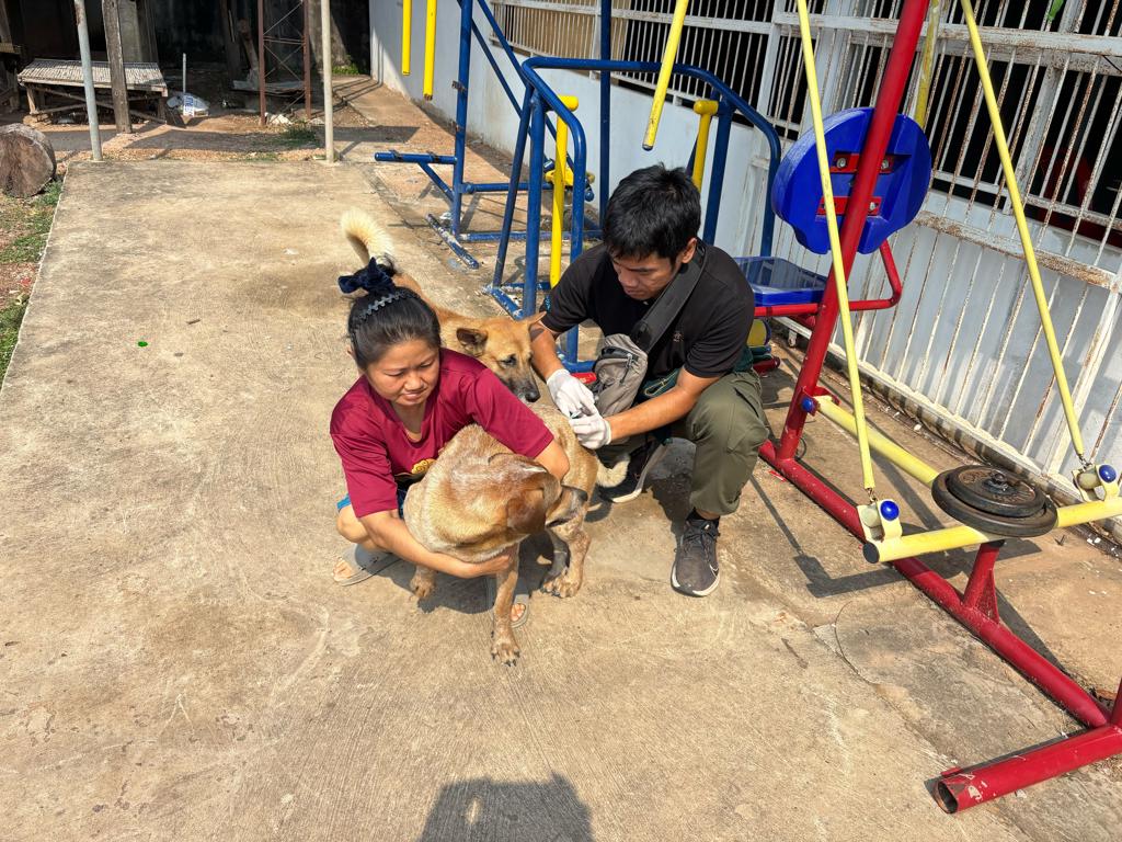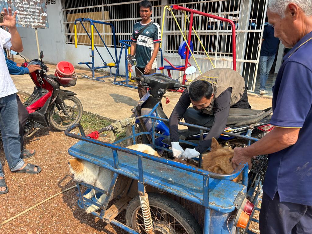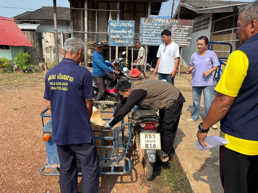 วันที่ 25 มีนาคม 2569 นางสาวเยาวนิตย์ บุรีรักษา ปศุสัตว์เขต 4 มอบหมายให้เจ้าหน้าที่ส่วนสุขภาพสัตว์ สำนักงานปศุสัตว์เขต 4 ร่วมปฏิบัติงานการควบคุมโรคพิษสุนัขบ้าในสัตว์ในพื้นที่อำเภอน้ำพอง จังหวัดขอนแก่น ร่วมกับเจ้าหน้าที่จากสำนักงานปศุสัตว์อำเภอน้ำพอง โดยลงพื้นที่ฉีดวัคซีนป้องกันโรคพิษสุนัขบ้าในสัตว์มีเจ้าของและในสัตว์ที่จับไม่ได้ในพื้นที่สาธารณะในรัศมี 5 กิโลเมตรรอบจุดเกิดโรค