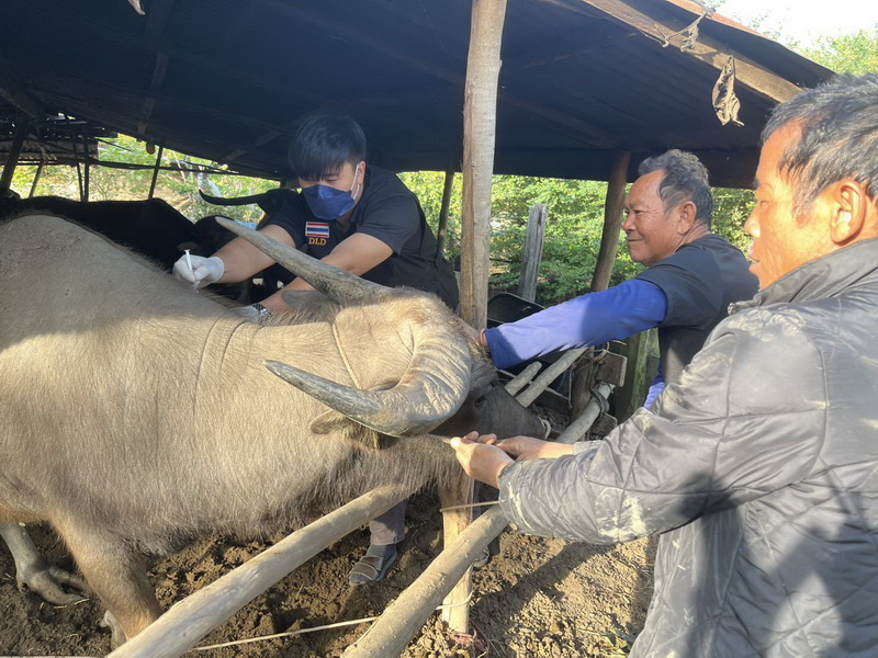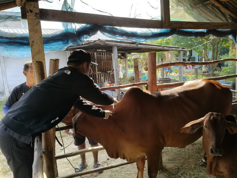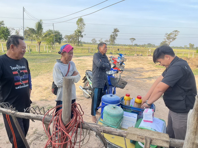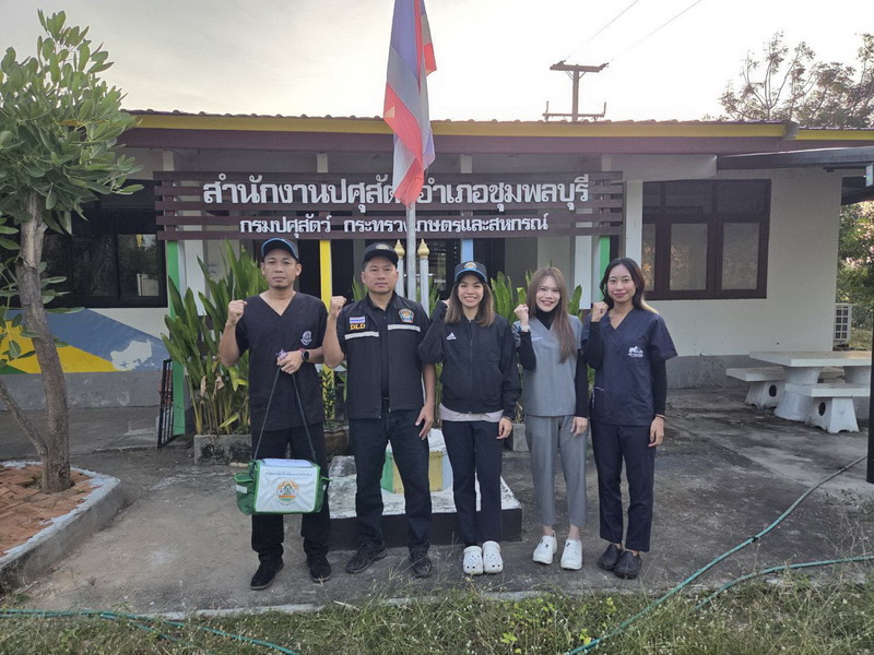 วันที่ 27 พฤศจิกายน 2568 นางสาวเยาวนิตย์ บุรีรักษา ปศุสัตว์เขต 4 มอบหมายให้ชุดเฉพาะกิจชุดที่ 1 ตามคำสั่งสำนักงานปศุสัตวฺเขต 4 ที่ 78/2568 บูรณาการร่วมกับเจ้าหน้าที่จากสำนักงานปศุสัตว์อำเภอชุมพลบุรี จังหวัดสุรินทร์ ปฏิบัติงานออกหน่วยสัตวแพทย์เคลื่อนที่เพื่อดูแลและฟื้นฟูสุขภาพสัตว์ในพื้นที่ตำบลศรีณรงค์ อำเภอชุมพลบุรี จังหวัดสุรินทร์ โดยปฏิบัติงานดูแลสุขภาพสัตว์และดำเนินการฉีดวัคซีนป้องกันโรคปากและเท้าเปื่อยในพื้นที่หมู่ 5 บ้านขี้เหล็ก เป็นโค 136 ตัว กระบือ 94 ตัว