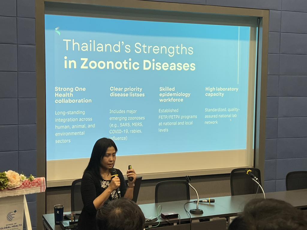 วันที่ 23-27 มีนาคม 2569 นางสาวเยาวนิตย์ บุรีรักษา ปศุสัตว์เขต 4 มอบหมายให้เจ้าหน้าที่ส่วนสุขภาพสัตว์ สำนักงานปศุสัตว์เขต 4 เข้าร่วมการฝึกอบรมหลักสูตร One health reality international training course: Maximizing impacts of one health operationalization: From concept to implementation จัดโดย School of global health คณะแพทยศาสตร์ จุฬาลงกรณ์มหาวิทยาลัย ร่วมกับ กรมความร่วมมือระหว่างประเทศ (TICA) กระทรวงการต่างประเทศ โดยมีแพทย์ สัตวแพทย์ และนักวิชาการด้านสิ่งแวดล้อม จำนวน 30 คน จากประเทศในภูมิภาคเอเชียแปซิฟิกจำนวน 10 ประเทศเข้าร่วมการฝึกอบรม ณ School of global health คณะแพทยศาสตร์ จุฬาลงกรณ์มหาวิทยาลัย กรุงเทพฯ