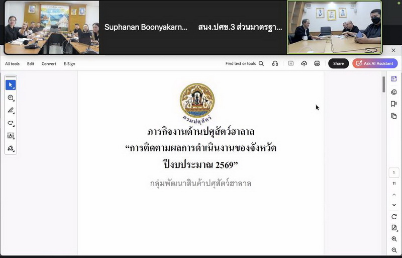 วันที่ 5 พฤศจิกายน 2568 เวลา 09.00 - 14.00 น. นางสาวเยาวนิตย์ บุรีรักษา ปศุสัตว์เขต 4 มอบหมายให้เจ้าหน้าที่ส่วนมาตรฐานการปศุสัตว์ สำนักงานปศุสัตว์เขต 4 เข้าร่วมประชุมติดตามผลการดำเนินงานของสำนักพัฒนาระบบและรับรองมาตรฐานสินค้าปศุสัตว์ ครั้งที่ 1/2569 ผ่านระบบการประชุมทางไกล Zoom Conference จัดโดย สำนักพัฒนาระบบและรับรองมาตรฐานสินค้าปศุสัตว์ เพื่อติดตามผลการดำเนินงานตามแผนงานและกิจกรรมต่างๆของสำนักงานปศุสัตว์จังหวัด รวมถึงงานนโยบายเร่งด่วนของกรมปศุสัตว์และสำนักพัฒนาระบบและรับรองมาตรฐานสินค้าปศุสัตว์ และรับทราบถึงแนวทางการปฏิบัติงานให้บรรลุตามวัตถุประสงค์ของโครงการฯ ดังกล่าวต่อไป
