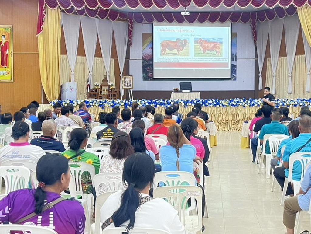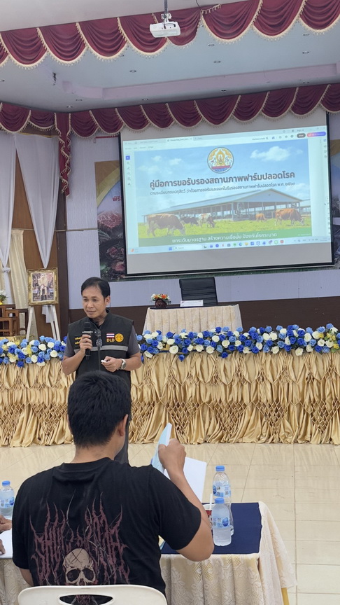 วันที่ 7 เมษายน 2569 นางสาวเยาวนิตย์ บุรีรักษา ปศุสัตว์เขต 4 มอบหมายให้ส่วนมาตรฐานการปศุสัตว์ และส่วนสุขภาพสัตว์ ร่วมเป็นวิทยากรให้กับกลุ่มจังหวัดสบายดี หลักสูตร ”การพัฒนามาตรฐานการผลิตโคเนื้อและการส่งออก“ โครงการพัฒนาการแปรรูปเพิ่มมูลค่าสินค้าเกษตรทั้งกลุ่มพืช ปศุสัตว์ และประมง เพื่อพัฒนาสู่สินค้าเกษตรมูลค่าสูง กิจกรรมพัฒนามาตรฐานการผลิตโคเนื้อ การแปรรูปผลิตภัณฑ์ และสร้างมูลค่าเนื้อโคขุนคุณภาพลุ่มน้ำโขง รุ่นที่ 9 จำนวนผู้เข้ารับการอบรม จำนวน 210 คน ณ หอประชุมโรงเรียนอนุบาลบึงกาฬวิศิษฐ์อำนวยศิลป์ อ.เมืองบึงกาฬ จ.บึงกาฬ ทั้งนี้เพื่อเตรียมความพร้อมผู้ประกอบการฟาร์มโคเนื้อสู่การผลิตเพื่อการส่งออก และปรับปรุงการเลี้ยงโคเนื้อได้อย่างมีประสิทธิภาพยิ่งขึ้นต่อไป