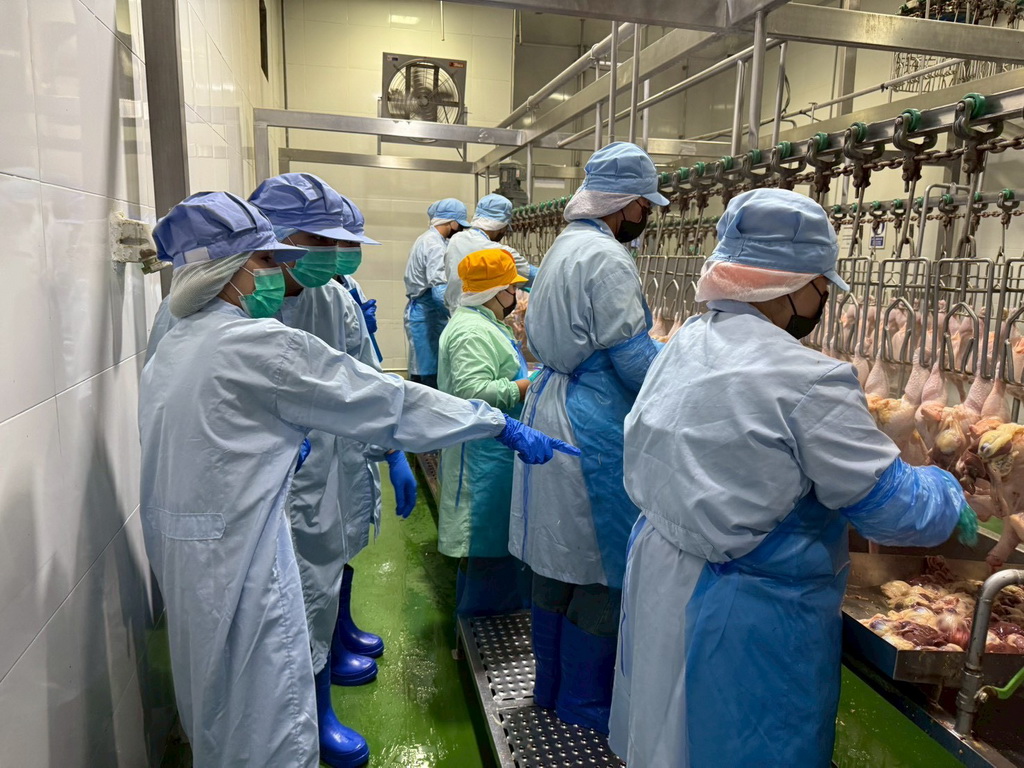 วันที่ 20 เมษายน 2569 นางสาวเยาวนิตย์ บุรีรักษา ปศุสัตว์เขต 4 มอบหมายให้เจ้าหน้าที่ส่วนมาตรฐานการปศุสัตว์ สำนักงานปศุสัตว์เขต 4 ร่วมกับสำนักงานปศุสัตว์จังหวัดมหาสารคาม ตรวจติดตาม GMP โรงฆ่าสัตว์ปีก บริษัท ซีพีเอฟ (ประเทศไทย) จำกัด (มหาชน) ต.นาโพธิ์ อ.กุดรัง จ.มหาสารคาม เพื่อให้ผู้ประกอบการปฏิบัติตามหลักเกณฑ์การปฏิบัติที่ดีสำหรับโรงฆ่าสัตว์ต่อไป