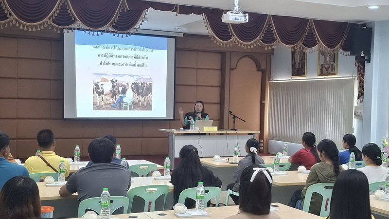 วันที่ 22 ตุลาคม 2568 นางสาวเยาวนิตย์ บุรีรักษา ปศุสัตว์เขต 4 มอบหมายให้ส่วนมาตรฐานการปศุสัตว์ ร่วมกับกลุ่มพัฒนาคุณภาพสินค้าปศุสัตว์ สำนักงานปศุสัตว์จังหวัดขอนแก่น จัดฝึกอบรม หลักสูตร "การปฏิบัติทางการเกษตรที่ดีด้านปศุสัตว์ สำหรับผู้ประกอบการฟาร์มโคนม" ณ ห้องประชุมกัลยาณมิตร สหกรณ์โคนมขอนแก่น จำกัด อำเภอเมืองขอนแก่น จังหวัดขอนแก่น มีผู้ประกอบการเข้ารับการอบรมทั้งสิ้น 24 ราย การอบรมในครั้งนี้ มีวัตถุประสงค์เพื่อให้ผู้ประกอบการได้มีความรู้ ความเข้าใจ ข้อกำหนดและหลักเกณฑ์เกี่ยวกับการปฏิบัติทางการเกษตรที่ดีด้านปศุสัตว์ (GAP) และสามารถนำความรู้ไปปรับปรุงการเลี้ยงโคนมได้อย่างมีประสิทธิภาพยิ่งขึ้นต่อไป