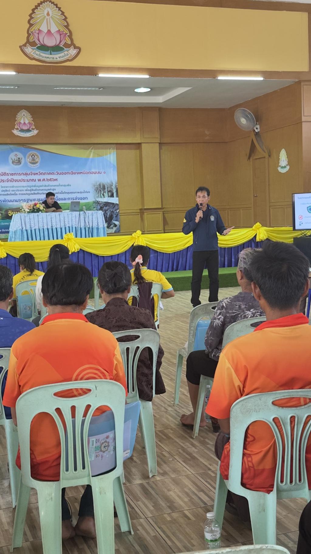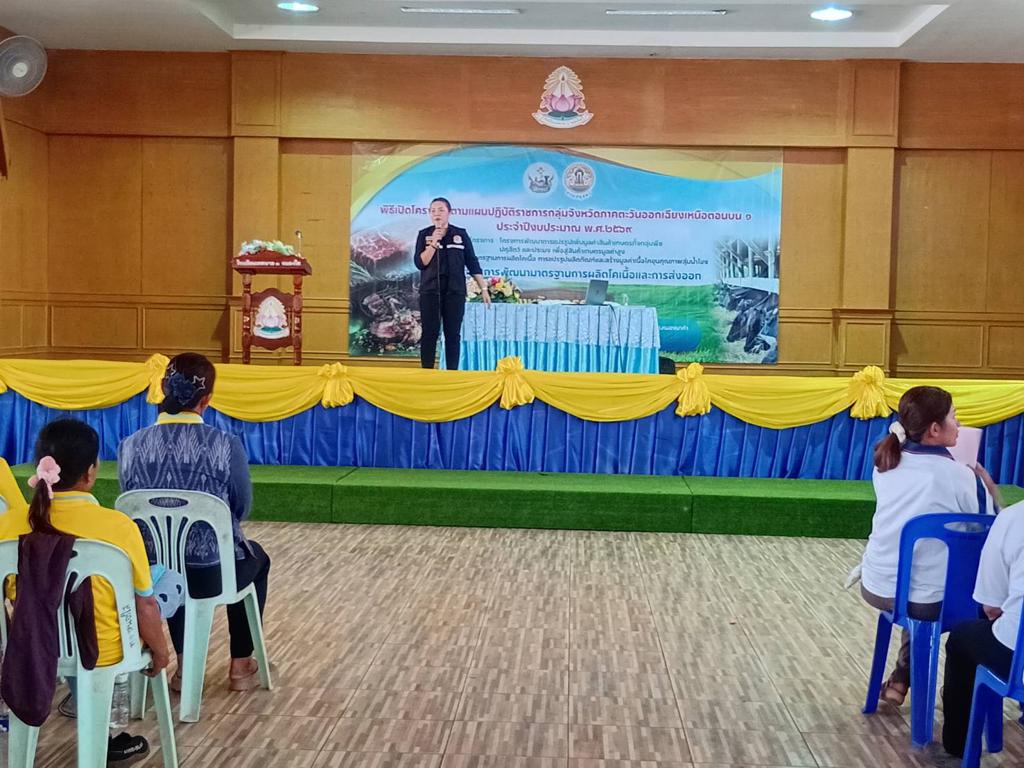 วันที่ 30 มีนาคม 2569 นางสาวเยาวนิตย์ บุรีรักษา ปศุสัตว์เขต 4 มอบหมายให้ส่วนมาตรฐานการปศุสัตว์ และส่วนสุขภาพสัตว์ ร่วมเป็นวิทยากรให้กับกลุ่มจังหวัดสบายดี หลักสูตร ”การพัฒนามาตรฐานการผลิตโคเนื้อและการส่งออก“ โครงการพัฒนาการแปรรูปเพิ่มมูลค่าสินค้าเกษตรทั้งกลุ่มพืช ปศุสัตว์ และประมง เพื่อพัฒนาสู่สินค้าเกษตรมูลค่าสูง กิจกรรมพัฒนามาตรฐานการผลิตโคเนื้อ การแปรรูปผลิตภัณฑ์ และสร้างมูลค่าเนื้อโคขุนคุณภาพลุ่มน้ำโขง รุ่นที่ 5 จำนวนผู้เข้ารับการอบรม จำนวนรุ่นละ 190 คน ณ อาคารเอนกประสงค์ โรงเรียนเทศบาล 1 หนองใส ต.หนองนาคำ อ.เมือง จ.อุดรธานี ทั้งนี้เพื่อเตรียมความพร้อมผู้ประกอบการฟาร์มโคเนื้อสู่การผลิตเพื่อการส่งออก และปรับปรุงการเลี้ยงโคเนื้อได้อย่างมีประสิทธิภาพยิ่งขึ้นต่อไป