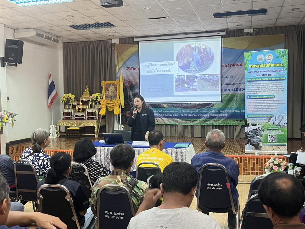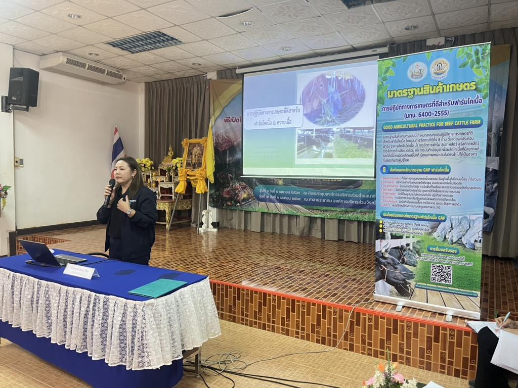 วันที่ 1 เมษายน 2569 นางสาวเยาวนิตย์ บุรีรักษา ปศุสัตว์เขต 4 มอบหมายให้ส่วนมาตรฐานการปศุสัตว์ และส่วนสุขภาพสัตว์ ร่วมเป็นวิทยากรให้กับกลุ่มจังหวัดสบายดี หลักสูตร ”การพัฒนามาตรฐานการผลิตโคเนื้อและการส่งออก“ โครงการพัฒนาการแปรรูปเพิ่มมูลค่าสินค้าเกษตรทั้งกลุ่มพืช ปศุสัตว์ และประมง เพื่อพัฒนาสู่สินค้าเกษตรมูลค่าสูง กิจกรรมพัฒนามาตรฐานการผลิตโคเนื้อ การแปรรูปผลิตภัณฑ์ และสร้างมูลค่าเนื้อโคขุนคุณภาพลุ่มน้ำโขง รุ่นที่ 7 จำนวนผู้เข้ารับการอบรม จำนวนรุ่นละ 190 คน ณ ห้องประชุมองค์การบริหารส่วนตำบลนาซ่าว อ.เชียงคาน จ.เลย ทั้งนี้เพื่อเตรียมความพร้อมผู้ประกอบการฟาร์มโคเนื้อสู่การผลิตเพื่อการส่งออก และปรับปรุงการเลี้ยงโคเนื้อได้อย่างมีประสิทธิภาพยิ่งขึ้นต่อไป