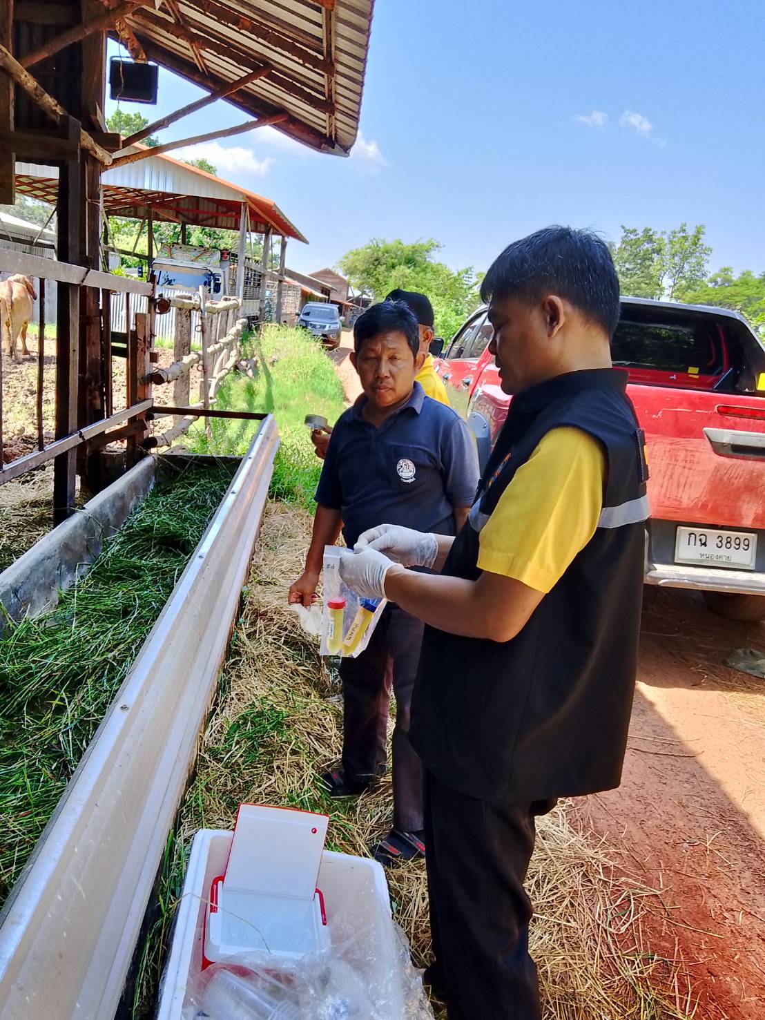 วันที่ 20 ตุลาคม 2568 ปศุสัตว์จังหวัดหนองคาย มอบหมายให้นายอุเทน หมั่นจิตร นายสัตวแพทย์ชำนาญการ พร้อมด้วยเจ้าหน้าที่สำนักงานปศุสัตว์อำเภอเมืองหนองคาย ดำเนินการเก็บตัวอย่างปัสสาวะโคเนื้อ จำนวน 2 ตัวอย่าง ตามกิจกรรม แก้ไขปัญหาการใช้สารเร่งเนื้อแดง จากฟาร์มนายนพดล สิงหาชม เลขที่ตั้ง 184 หมู่ที่ 7 ตำบลหนองกอมเกาะ อำเภอเมืองหนองคาย จังหวัดหนองคาย
