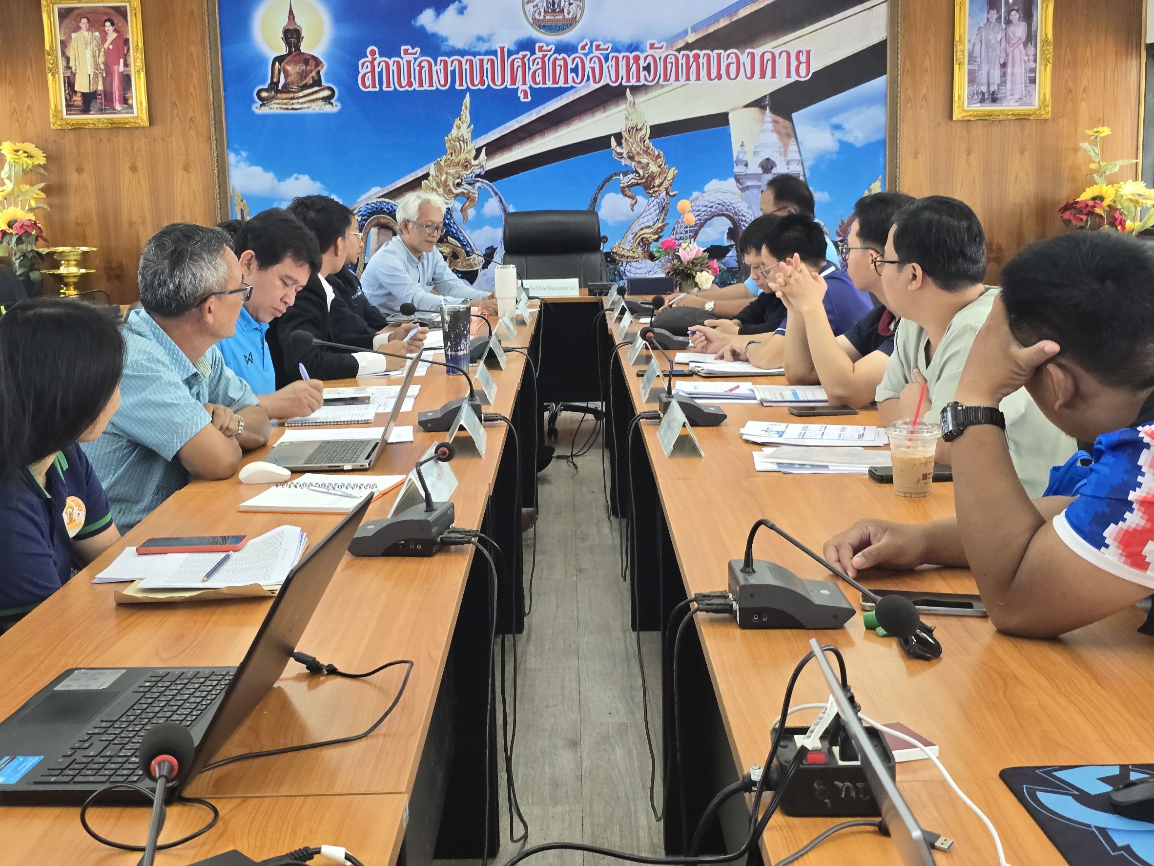 วันที่ 17 ตุลาคม 2568 นายคมวุฒิ ธรรมสาร์ นายสัตวแพทย์ชำนาญการพิเศษ รักษาราชการแทน ปศุสัตว์จังหวัดหนองคาย เป็นประธานในการประชุมตรวจสอบ และเร่งรัด ดำเนินงานโครงการธนาคารโค-กระบือเพื่อเกษตรกร ตามพระราชดำริ ในพื้นที่จังหวัดหนองคาย ณ สำนักงานปศุสัตว์จังหวัดหนองคาย โดยมีหัวหน้ากลุ่มส่งเสริมและพัฒนาการปศุสัตว์ ปศุสัตว์อำเภอทุกอำเภอ และเจ้าหน้าที่ที่เกี่ยวข้องเข้าร่วมประชุมดังกล่าว