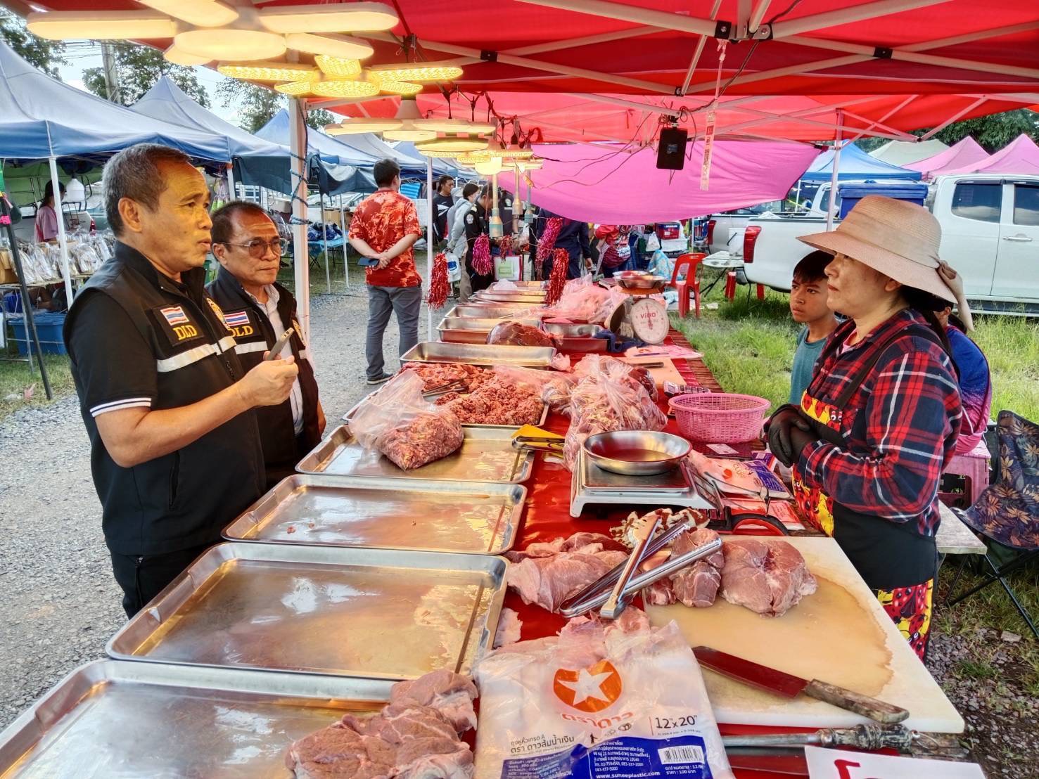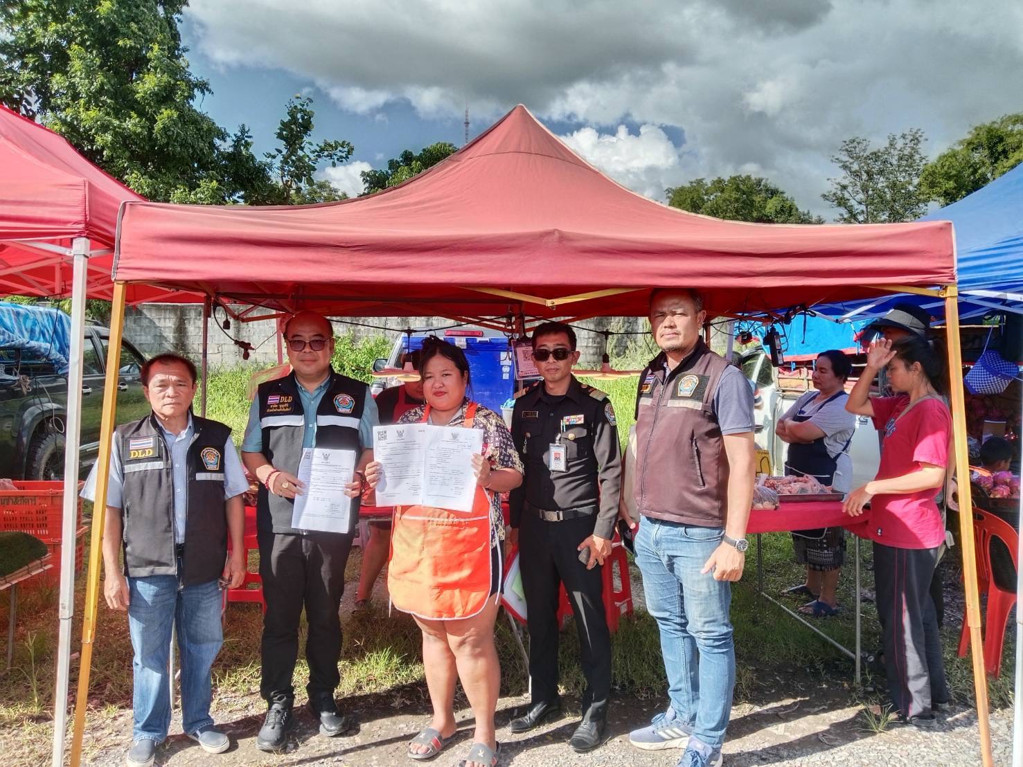 นายวินัย จะแรบรัมย์ นายสัตวแพทย์ชำนาญการพิเศษ รักษาราชการแทนปศุสัตว์จังหวัดขอนแก่น พร้อมด้วยเจ้าหน้าที่สำนักงานปศุสัตว์จังหวัดขอนแก่น ด่านกักกันสัตว์ขอนแก่น และเจ้าหน้าที่สำนักงานปศุสัตว์อำเภอหนองเรือ ได้ลงพื้นที่ตรวจสอบข้อเท็จจริง กรณีมีผู้แจ้งเกี่ยวกับการจำหน่ายเนื้อสัตว์ไม่มีใบอนุญาตในตลาดนัดหนองเรือวันพฤหัสบดี