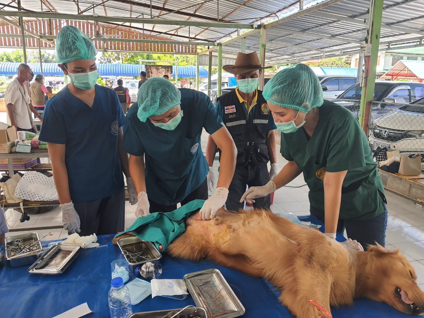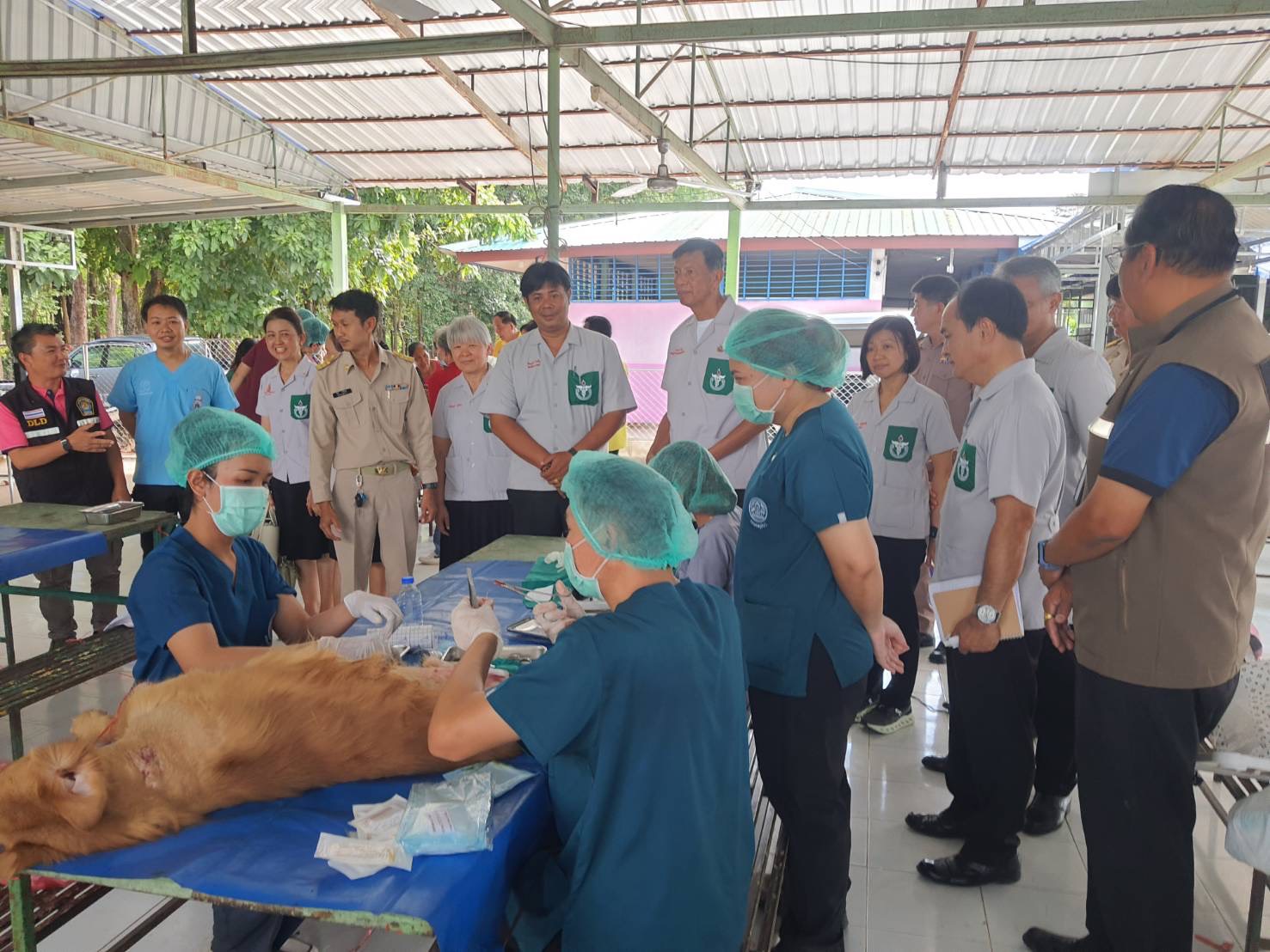 วันที่ 17 ตุลาคม 2568 นายสัตวแพทย์วินัย จะแรบรัมย์ รักษาราชการแทนปศุสัตว์จังหวัดขอนแก่น มอบหมายให้เจ้าหน้าที่กลุ่มพัฒนาสุขภาพสัตว์ สำนักงานปศุสัตว์จังหวัดขอนแก่น ร่วมกับสำนักงานปศุสัตว์อำเภอสีชมพู สำนักงานปศุสัตว์อำเภอภูเวียง สำนักงานปศุสัตว์อำเภอชุมแพ สำนักงานปศุสัตว์อำเภอหนองนาคำ สำนักงานปศุสัตว์อำเภอเวียงเก่า สำนักงานปศุสัตว์อำเภอภูผาม่าน และด่านกักกันสัตว์จังหวัดขอนแก่น ออกหน่วยบริการหน่วยแพทย์อาสาสมเด็จพระศรีนครินทราบรมราชชนนี (พอ.สว.) และโครงการ “บำบัดทุกข์ บำรุงสุข สร้างรอยยิ้มให้กับประชาชน” ณ โรงเรียนบ้านใหม่โสกส้มกบ ตำบลบ้านใหม่ อำเภอสีชมพู จังหวัดขอนแก่น โดยมี นายประจวบ รักแพทย์ รองผู้ว่าราชการจังหวัดขอนแก่นเป็นประธานในพิธีเปิดโครงการฯ มีเกษตรกรมารับคำปรึกษาด้านการเลี้ยงสัตว์ การดูแลสุขภาพสัตว์ และแจกเวชภัณฑ์สำหรับดูแลสุขภาพสัตว์ในเบื้องต้น รวมทั้งสิ้นจำนวน 83 ราย ให้บริการผ่าตัด ทำหมันแก่สุนัข และแมว รวมทั้งสิ้น 31 ตัว เป็นสุนัข 6 ตัว (เพศเมีย 4 ตัว เพศผู้ 2 ตัว) และแมว 25 ตัว(เพศเมีย 22 ตัว เพศผู้ 3 ตัว ) และให้บริการฉีดวัคซีนป้องกันโรคพิษสุนัขบ้า ให้แก่สุนัขและแมว จำนวน 35 ตัว เป็นสุนัข 6 ตัว แมว 29 ตัว