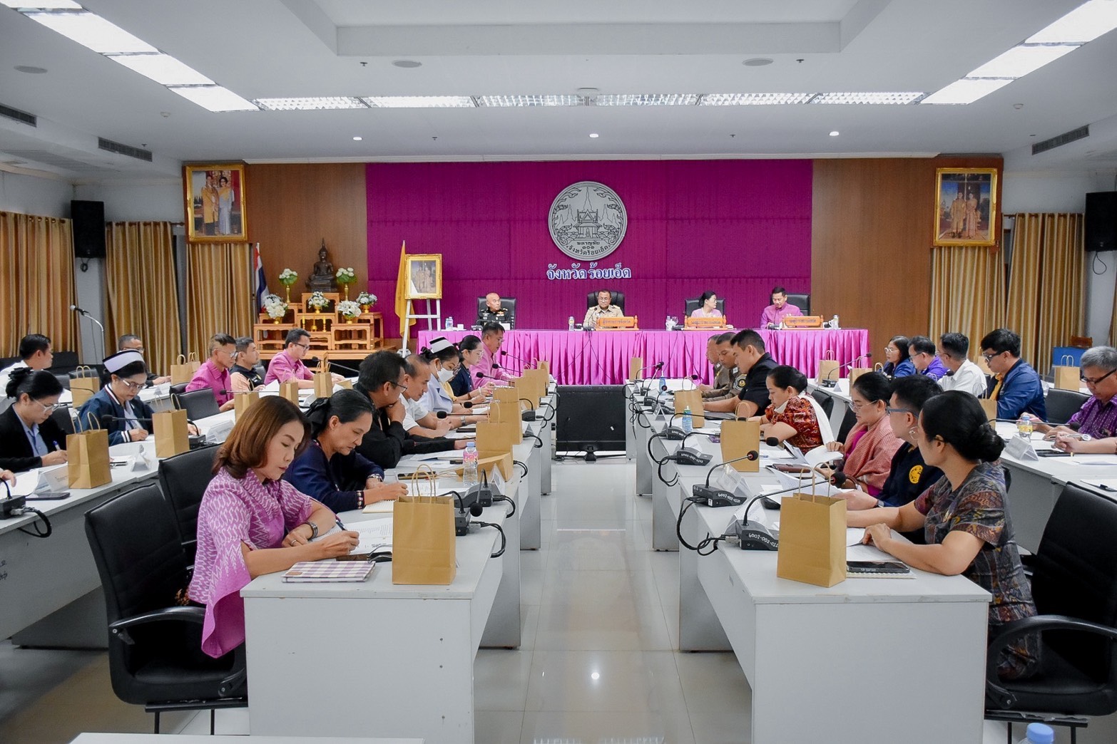 วันศุกร์ที่ 24 ตุลาคม 2568 นายอำนาจ มะธิปิไข ปศุสัตว์จังหวัดร้อยเอ็ด นำกลุ่มพัฒนาสุขภาพสัตว์ เข้าร่วมประชุมเพื่อรับทราบภารกิจในการเตรียมรับผู้แทนพระองค์ฯ ในการเชิญผ้าพระกฐิน ไปถวายยังที่ชุมนุมสงฆ์ ผู้จำพรรษากาลครบถ้วนไตรมาส ในกฐินกาล 2568 ณ วัดฝั่งแดง ตำบลอุ่มเม้า อำเภอธวัชบุรี และวัดท่าสะแบง ตำบลมะบ้า อำเภอทุ่งเขาหลวง จังหวัดร้อยเอ็ด ในวันอังคารที่ 28 ตุลาคม 2568 นั้น ให้เป็นไปด้วยความเรียบร้อยและสมพระเกียรติ ณ ห้องประชุมพระมหาเจดีย์ชัยมงคล ชั้น 5 ศาลากลางจังหวัดร้อยเอ็ด โดยมีนายชัชวาลย์ เบญจสิริวงศ์ ผู้ว่าราชการจังหวัดร้อยเอ็ด เป็นประธานในการประชุม และมีนายพิชัยยา ตุระซอง รองผู้ว่าราชการจังหวัดร้อยเอ็ด ข้าราชการทหาร ตำรวจ หัวหน้าส่วนราชการ ข้าราชการ และเจ้าหน้าที่ที่เกี่ยวข้อง เข้าร่วมประชุมฯ