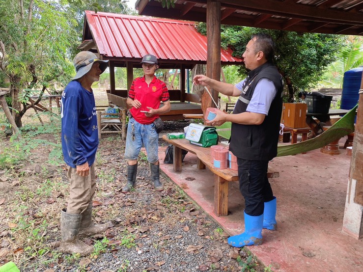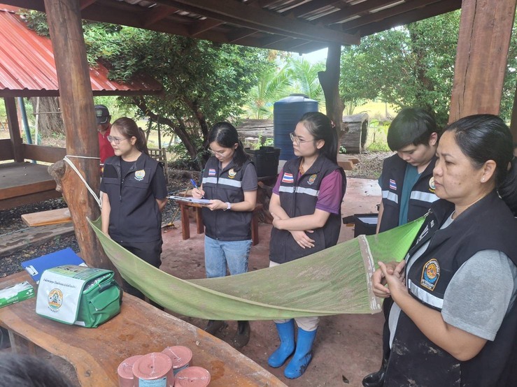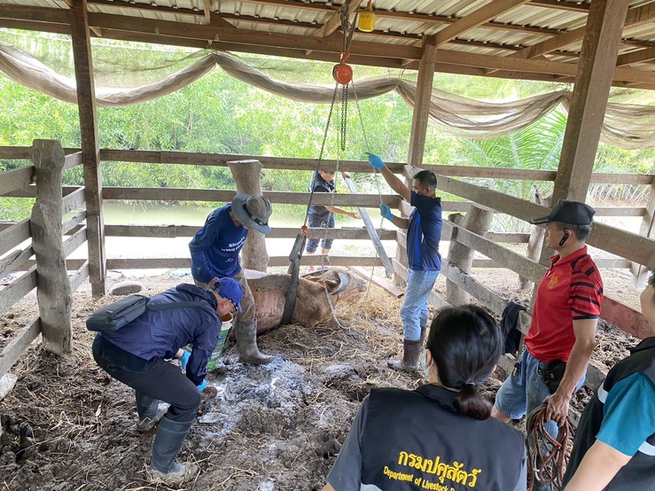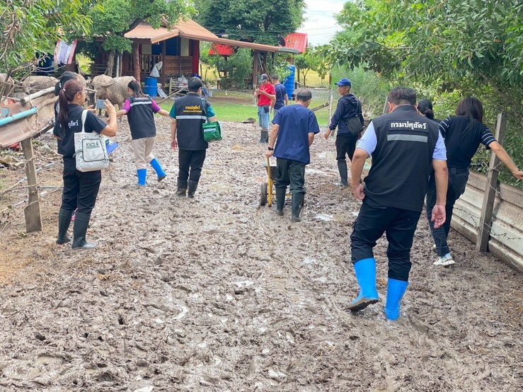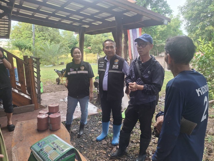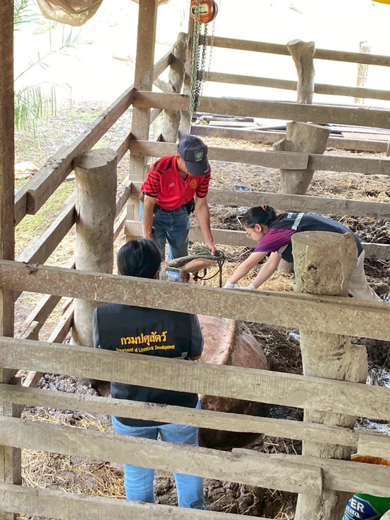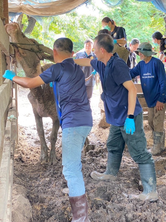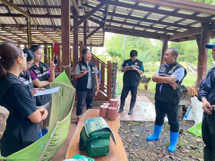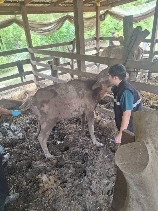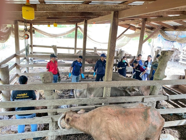 วันเสาร์ที่ 8 พฤศจิกายน 2568 นายอำนาจ มะธิปิไข ปศุสัตว์จังหวัดร้อยเอ็ด นำกลุ่มพัฒนาสุขภาพสัตว์ และสำนักงานปศุสัตว์อำเภอสุวรรณภูมิ ร่วมกับศูนย์วิจัยและพัฒนาการสัตวแพทย์ภาคตะวันออกเฉียงเหนือตอนบน จ.ขอนแก่น ตรวจสอบข้อเท็จจริงกรณีกระบือป่วย ณ บ้านดอนสังข์ ต.สระคู อ.สุวรรณภูมิ จ.ร้อยเอ็ด เจ้าหน้าที่ได้ดำเนินการสอบสวนโรค เก็บตัวอย่างเพื่อส่งตรวจวินิจฉัยโรค ให้การรักษาเบื้องต้น และให้คำแนะนำเรื่องการดูแลแก่เจ้าของสัตว์ หากพบสัตว์ป่วยตายผิดปกติ ให้แจ้งเจ้าหน้าที่ปศุสัตว์ทันที
