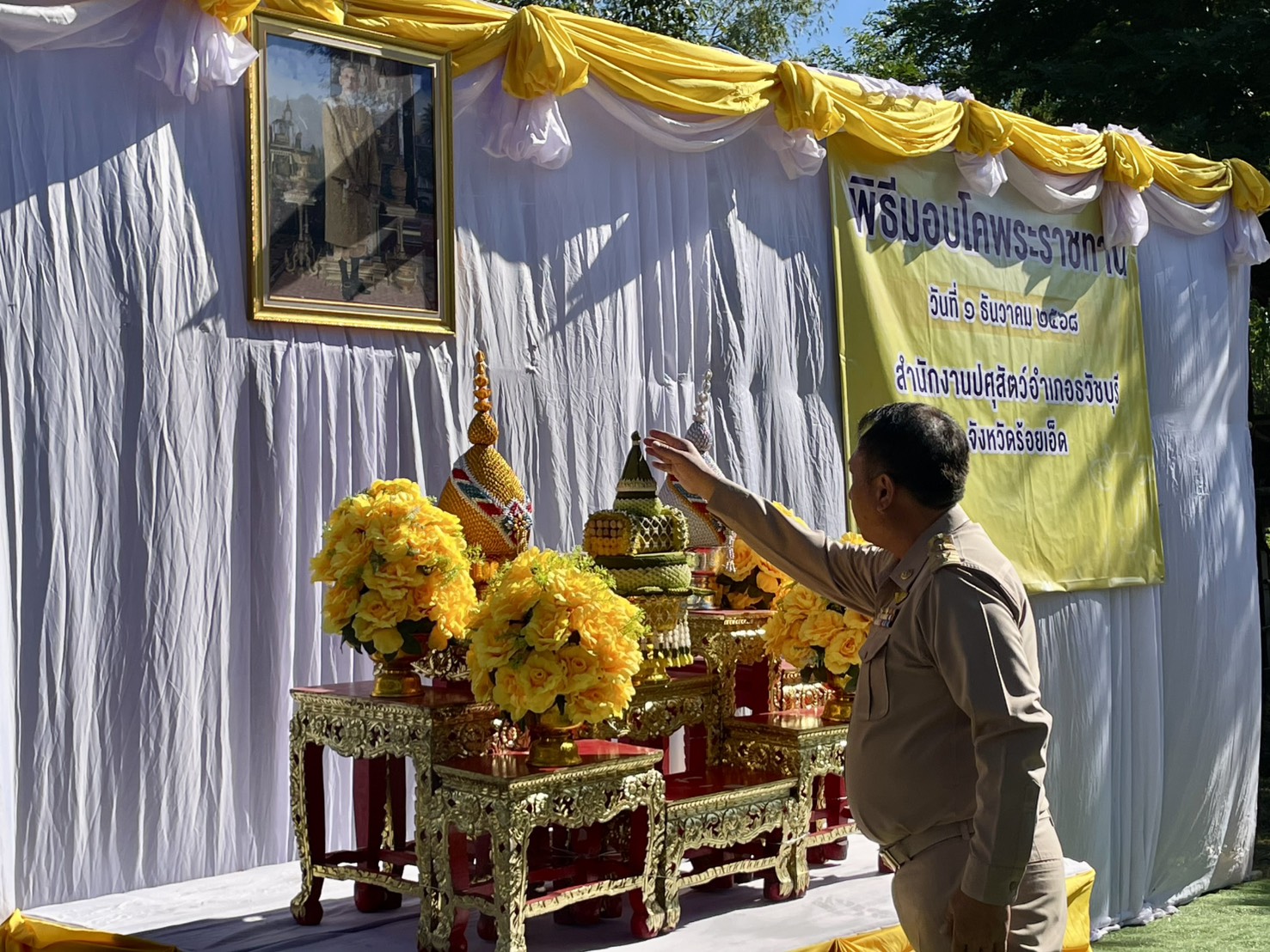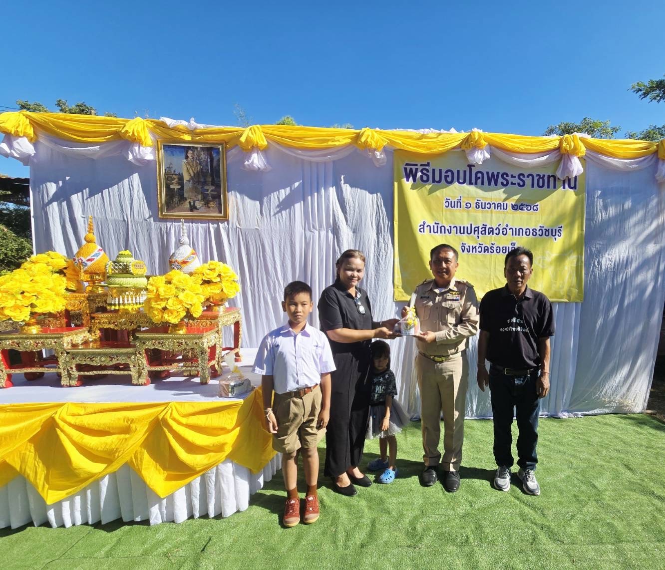 วันที่ 1 ธันวาคม 2568 นายอำนาจ มะธิปิไข ปศุสัตว์จังหวัดร้อยเอ็ด พร้อมด้วยกลุ่มส่งเสริมและพัฒนาการปศุสัตว์ สำนักงานปศุสัตว์อำเภอธวัชบุรีจัดพิธีมอบโคพระราชทาน