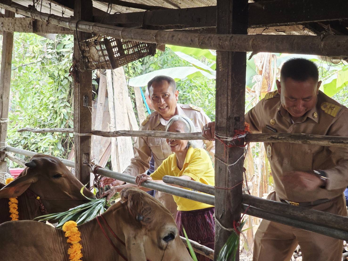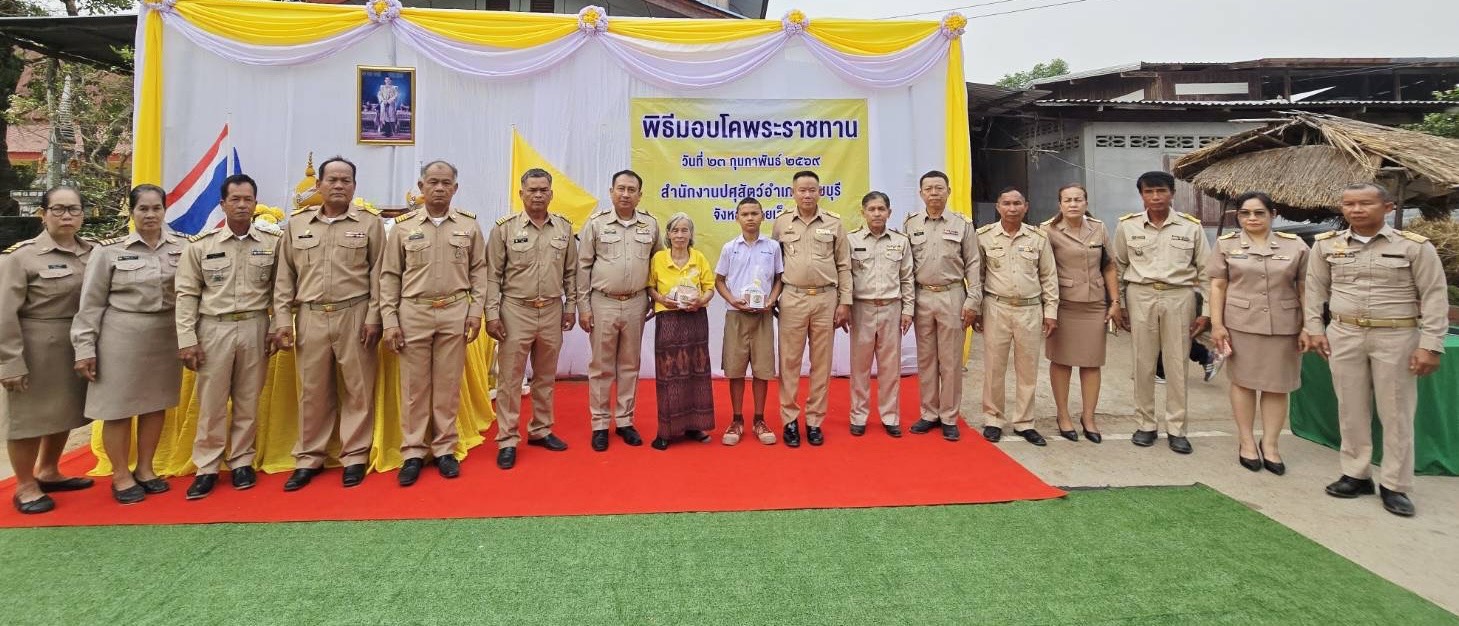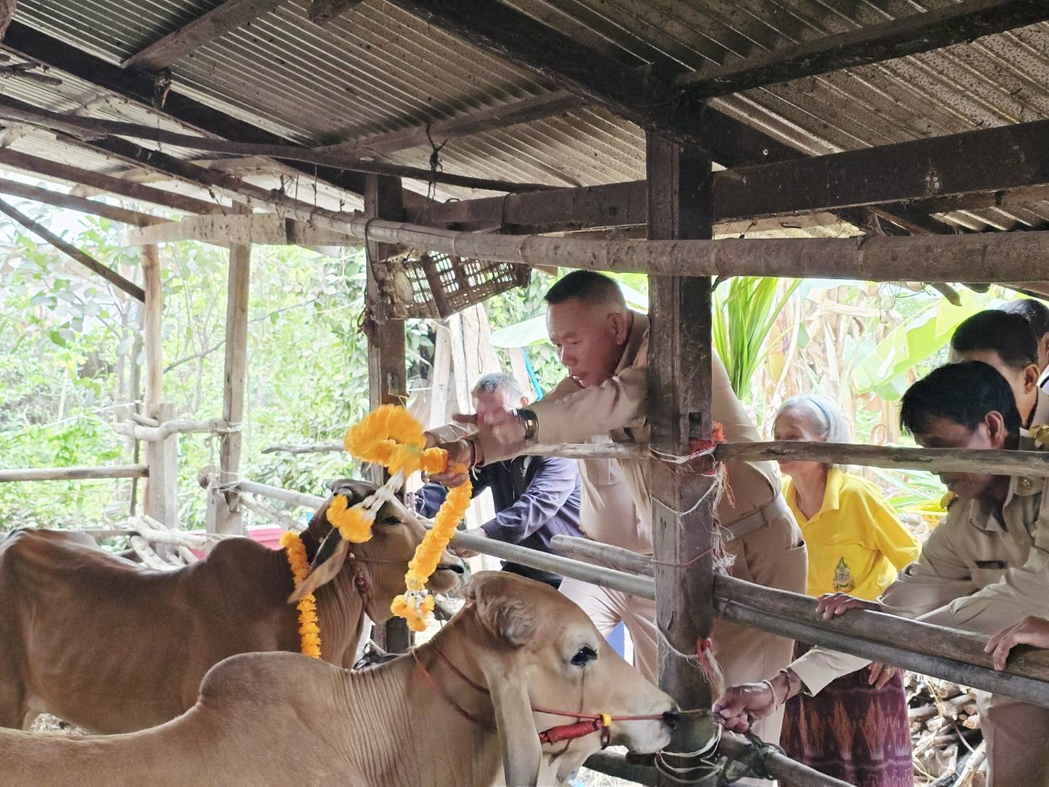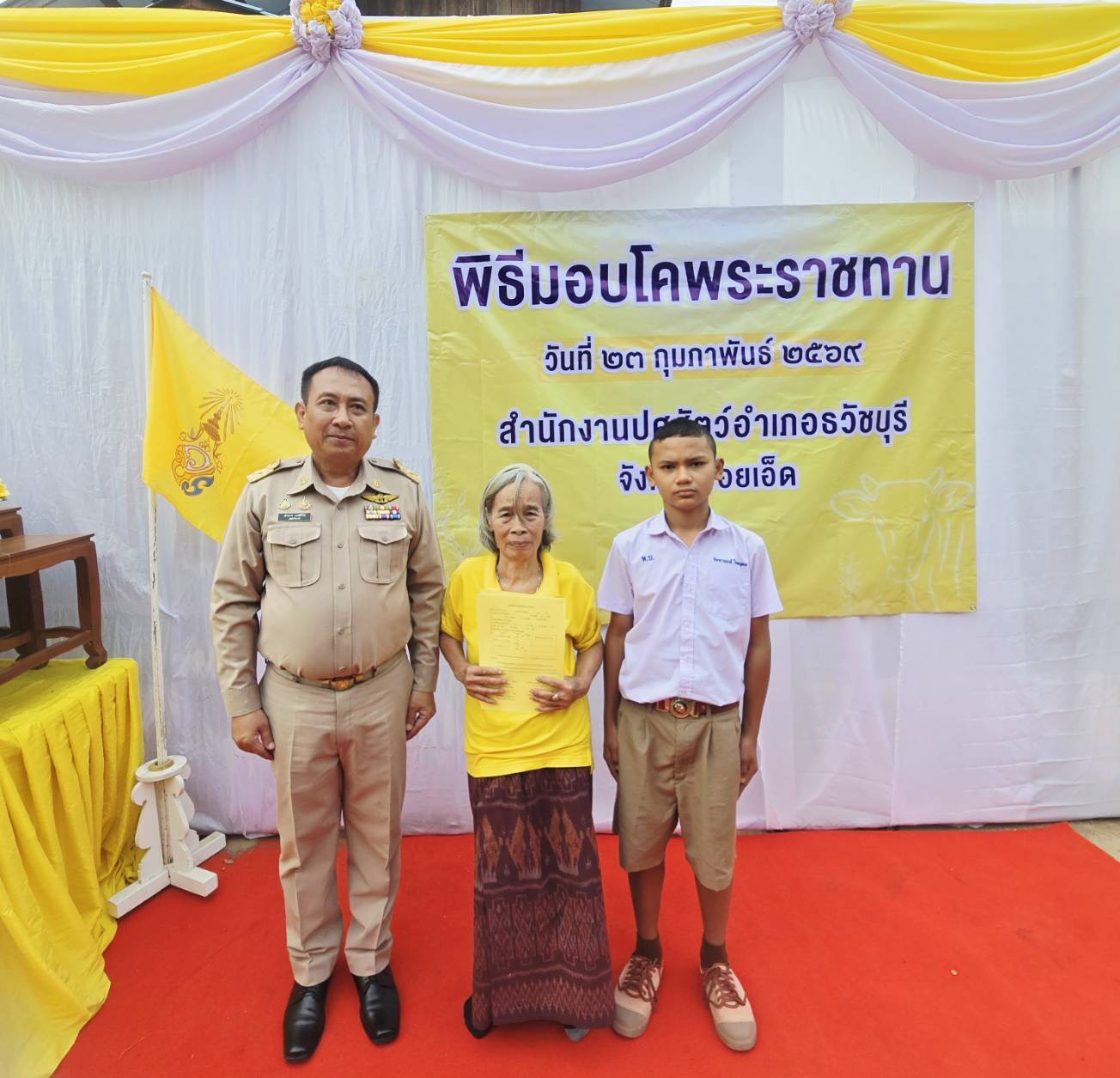 วันที่ 23 กุมภาพันธ์ 2569 เวลา 09.00 น. นายอำนาจ มะธิปิไข ปศุสัตว์จังหวัดร้อยเอ็ด พร้อมด้วยกลุ่มส่งเสริมและพัฒนาการปศุสัตว์ และสำนักงานปศุสัตว์อำเภอธวัชบุรี จัดพิธีมอบโคพระราชทาน ด้วยพระบาทสมเด็จพระเจ้าอยู่หัว พระราชทานปล่อยชีวิตโคเพศผู้ จำนวน 1 ตัว และเพศเมีย จำนวน 1 ตัว เพื่อนำไปมอบให้แก่เกษตรกรในพื้นที่อำเภอธวัชบุรี จังหวัดร้อยเอ็ด ได้แก่ นางทองสา ไชยอุดม บ้านเลขที่ 29 หมู่ที่ 1 บ้านเพ็ก ตำบลไพศาล อำเภอธวัชบุรี จังหวัดร้อยเอ็ด