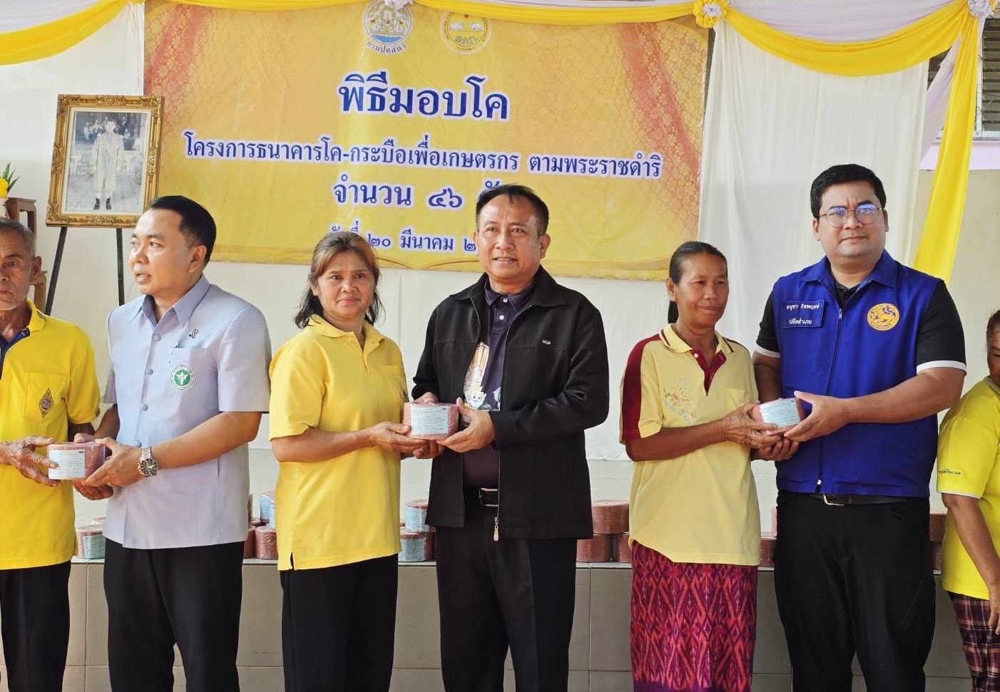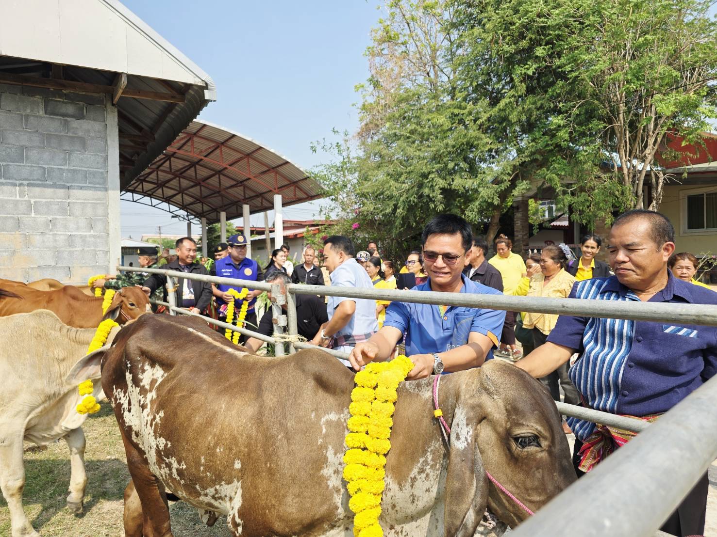 วันที่ 20 มีนาคม 2569 นายอำนาจ มะธิปิไข ปศุสัตว์จังหวัดร้อยเอ็ด พร้อมด้วยกลุ่มส่งเสริมและพัฒนาการปศุสัตว์ และสำนักงานปศุสัตว์อำเภอปทุมรัตต์ ร่วมจัดพิธีมอบโค โครงการธนาคารโค-กระบือเพื่อเกษตรกร ตามพระราชดำริ เป็นโค จำนวน 46 ตัว และมอบเวชภัณฑ์ จำนวน 46 ชุด โครงการธนาคารโค-กระบือเพื่อเกษตรกร ตามพระราชดำริ ณ หมู่บ้านบัวขาว ตำบลสระบัว อำเภอปทุมรัตต์ จังหวัดร้อยเอ็ด