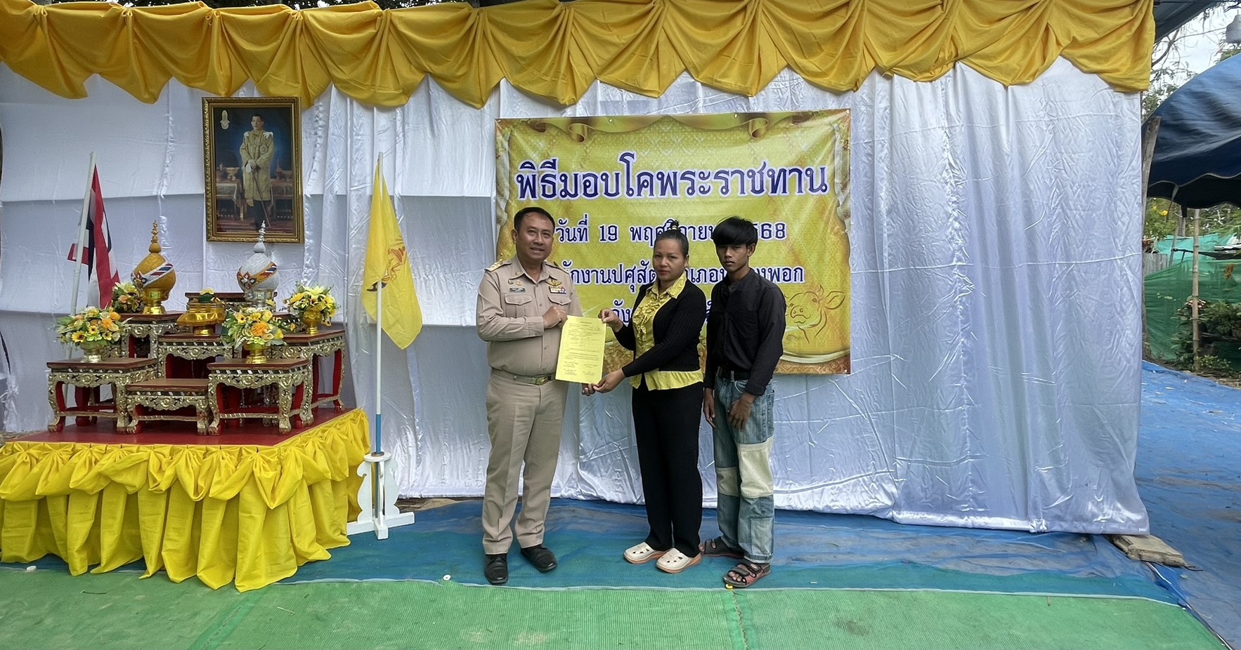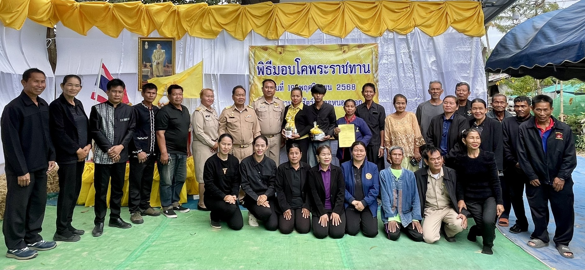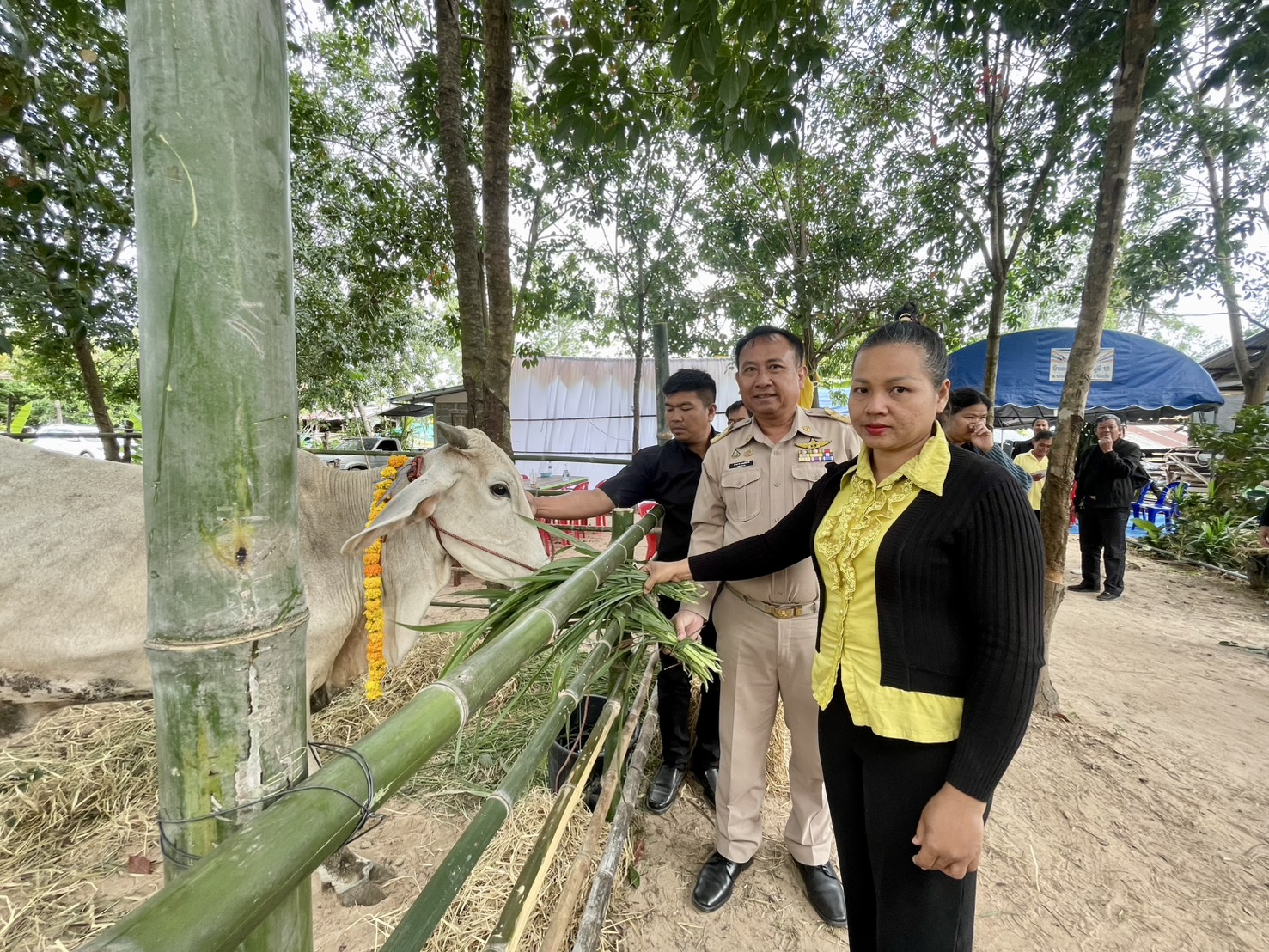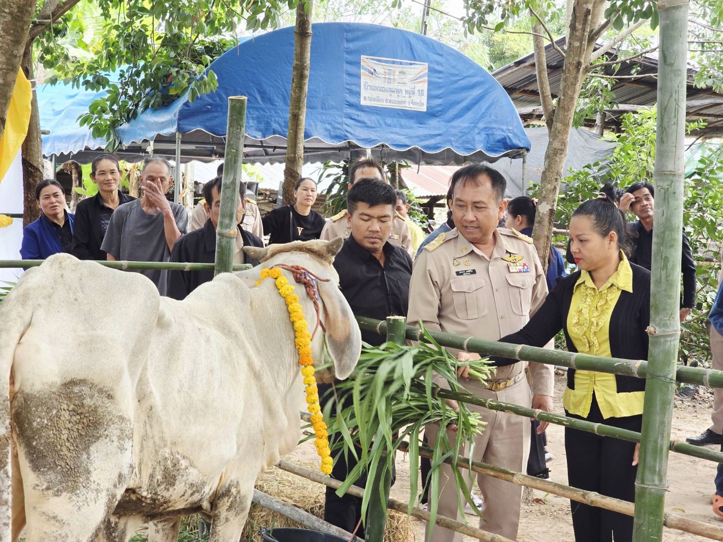 วันที่ 19 พฤศจิกายน 2568 นายอำนาจ มะธิปิไข ปศุสัตว์จังหวัดร้อยเอ็ด พร้อมด้วยกลุ่มส่งเสริมและพัฒนาการปศุสัตว์ สำนักงานปศุสัตว์อำเภอหนองพอกจัดพิธีมอบโคพระราชทาน ด้วยพระบาทสมเด็จพระเจ้าอยู่หัว พระราชทานปล่อยชีวิตโคเพศผู้ 1 ตัว เพศเมีย 1 ตัว เพื่อนำไปมอบให้แก่เกษตรกรในพื้นที่อำเภอหนองพอก จังหวัดร้อยเอ็ด ได้แก่ นางดวงฤทัย แสงงาม ณ บ้านเลขที่25 หมู่ที่18 ตำบลรอบเมือง อำเภอหนองพอก จังหวัดร้อยเอ็ด