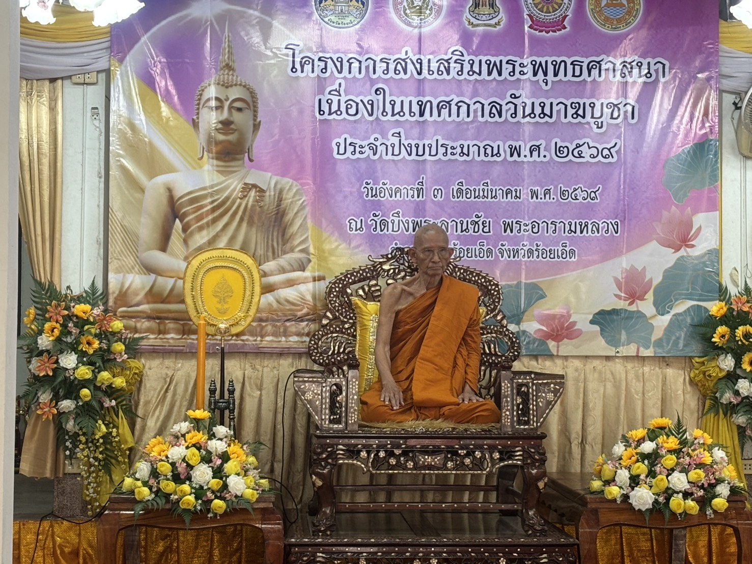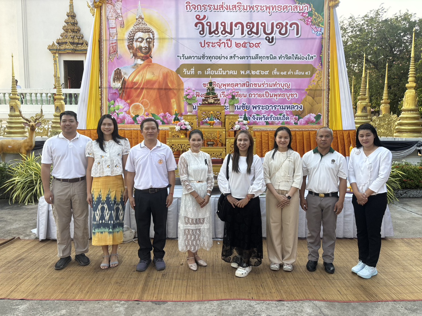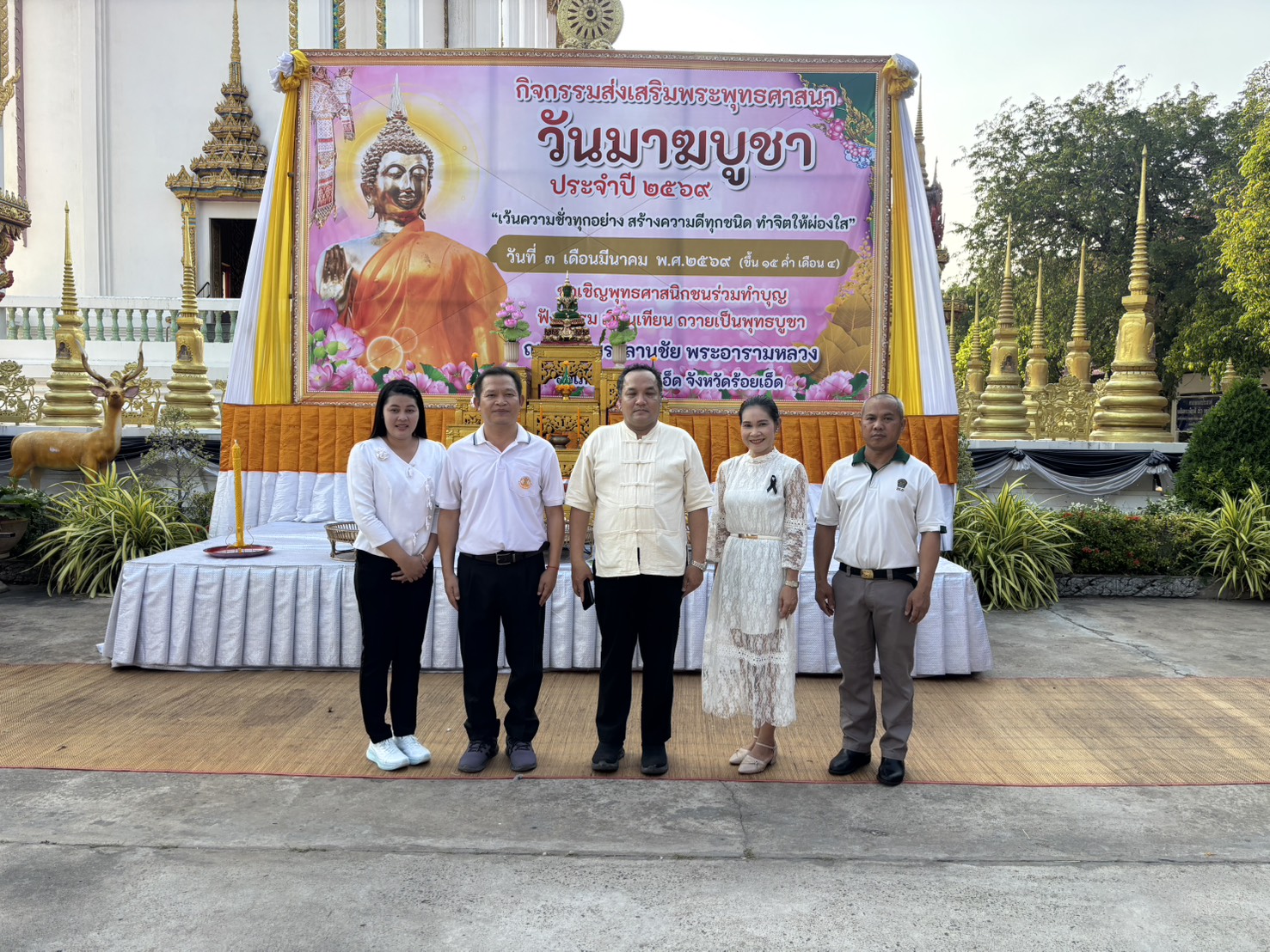 วันที่ 3 มีนาคม 2569 นายอำนาจ มะธิปิไข ปศุสัตว์จังหวัดร้อยเอ็ด มอบหมายให้เจ้าหน้าที่สำนักงานปศุสัตว์จังหวัดร้อยเอ็ด ร่วมกิจกรรมโครงการส่งเสริมพระพุทธศาสนา เนื่องในเทศกาลวันมาฆบูชา ประจำปี พ.ศ.2569 โดยมีนายชัชวาลย์ เบญจสิริวงศ์ ผู้ว่าราชการจังหวัดร้อยเอ็ด เป็นประธานในพิธี ณ วัดบึงพระลานชัยพระอารามหลวง อ.เมือง จ.ร้อยเอ็ด สำนักงานปศุสัตว์จังหวัดร้อยเอ็ดได้ร่วมแสดงพลังความสามัคคี สนับสนุนและมีส่วนร่วมในกิจกรรมสำคัญของจังหวัด เพื่อร่วมสืบสานพระพุทธศาสนาและแสดงความจงรักภักดีต่อสถาบันพระมหากษัตริย์