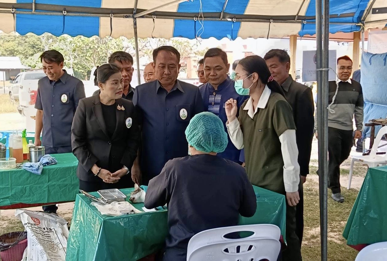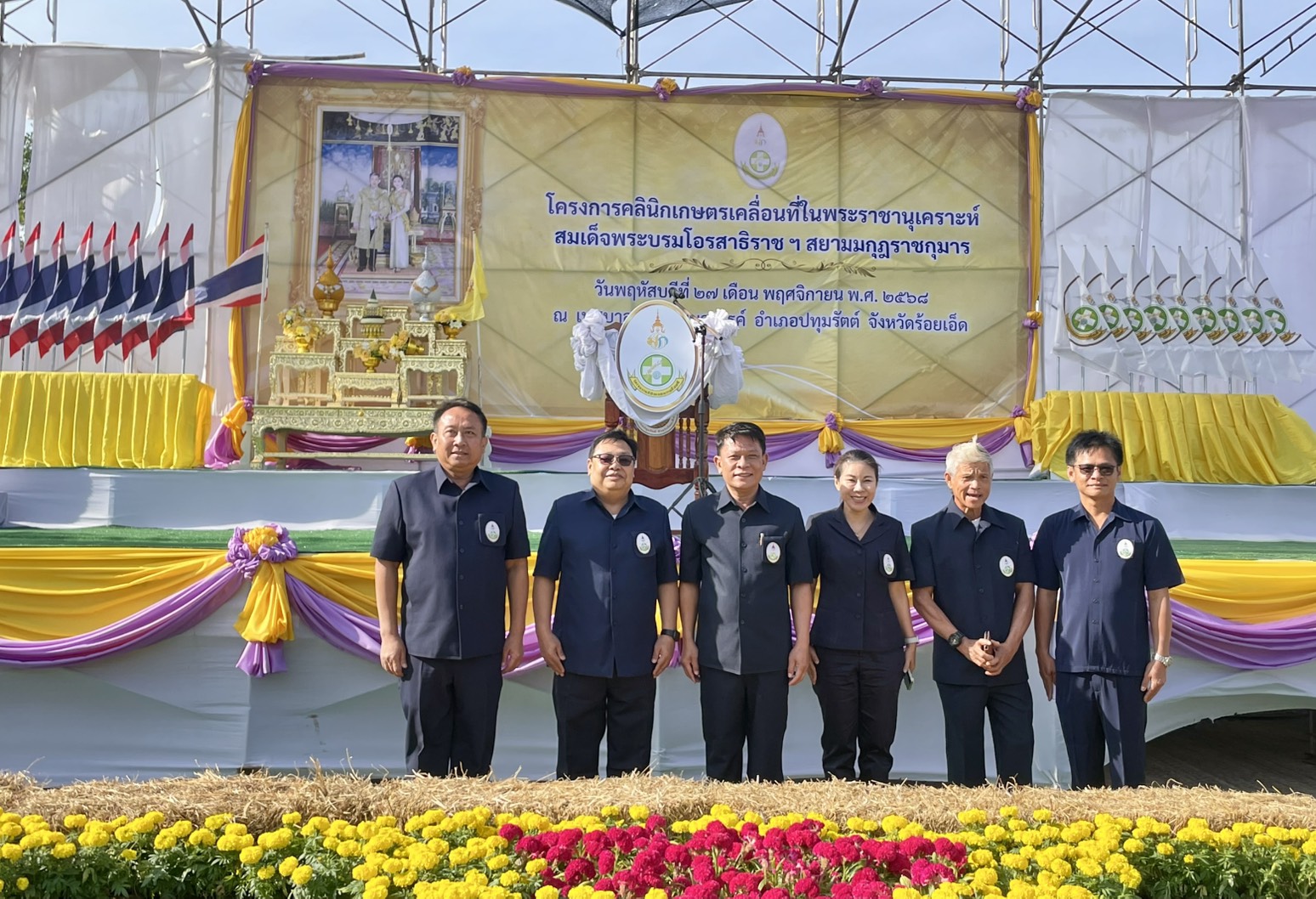 วันที่ 27 พฤศจิกายน 2568 นายอำนาจ มะธิปิไข ปศุสัตว์จังหวัดร้อยเอ็ด นำเจ้าหน้าที่ปศุสัตว์ออกร่วมปฏิบัติงานโครงการคลินิกเกษตรเคลื่อนที่ในพระราชานุเคราะห์ สมเด็จพระบรมโอรสาธิราชฯ สยามมกุฎราชกุมาร โดยมีวัตถุประสงค์เพื่อบูรณาการความร่วมมือระหว่างหน่วยงานในสังกัดกระทรวงเกษตรและสหกรณ์ในการให้บริการแก้ไขปัญหาทางด้านการเกษตรแบบครบวงจรในพื้นที่อยู่ห่างไกลให้แก่เกษตรกร ทั้งนี้ คลินิกปศุสัตว์ได้ให้บริการผ่าตัดทำหมันสุนัข-แมวจำนวน 42 ฉีดวัคซีนป้องกันโรคพิษสุนัขบ้าในสุนัข-แมว จำนวน 50 ตัว แจกจ่ายเอกสารความรู้และเวชภัณฑ์สำหรับสัตว์ อาทิ เเร่ธาตุก้อน วิตามินละลายน้ำ ยาถ่ายพยาธิชนิดน้ำ/ผง พร้อมทั้งให้คำแนะนำปรึกษาปัญหาการเลี้ยงสัตว์แก่เกษตรกร
