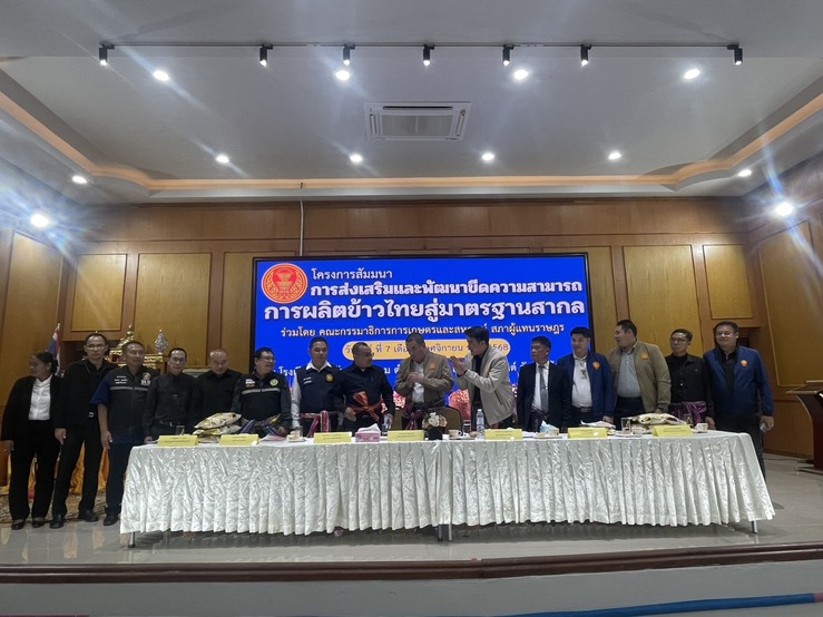 วันที่ 7 พฤศจิกายน 2568 นายอำนาจ มะธิปิไข ปศุสัตว์จังหวัดร้อยเอ็ด ร่วมสัมมนากับคณะกรรมาธิการเกษตรและสหกรณ์ สภาผู้แทนราษฎร เรื่อง การส่งเสริมและพัฒนาขีดความสามารถการผลิตข้าวไทยสู่มาตรฐานสากล โดยการสัมนาในครั้งนี้มีวัตถุประสงค์เพื่อให้เกษตรกรในพื้นที่มีองค์ความรู้และความเข้าใจเกี่ยวกับการพัฒนาเพิ่มศักยภาพการผลิตข้าวที่สามารถแข่งขันได้ การเลือกเมล็ดพันธุ์ การบริหารจัดการอย่างมีประสิทธิภาพ และการเข้าถึงโครงการและนโยบายการช่วยเหลือต่าง ๆ ของทางภาครัฐ โดยมี นายณรงเดช อุฬารกุล ประธานคณะกรรมมธิการการเกษตรและสหกรณ์ เป็นประธานการสัมนา พร้อมด้วย นายชัชวาลย์ เบญจสิริวงศ์ ผู้ว่าราชการจังหวัดร้อยเอ็ด และหน่วยงานที่เกี่ยวข้อง ร่วมการสัมนาดังกล่าวด้วย ณ โรงเรียนปทุมรัตต์พิทยาคม ตำบลบังแดง อำเภอปทุมรัตต์ จังหวัดร้อยเอ็ด