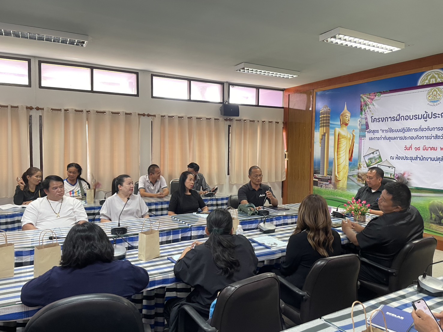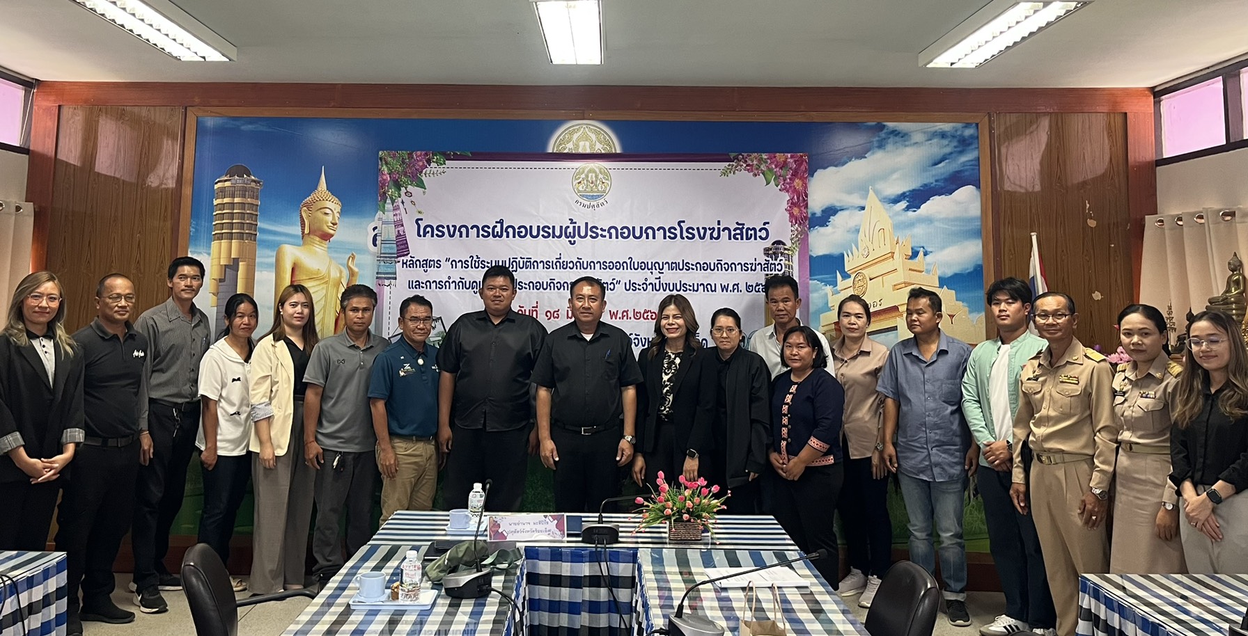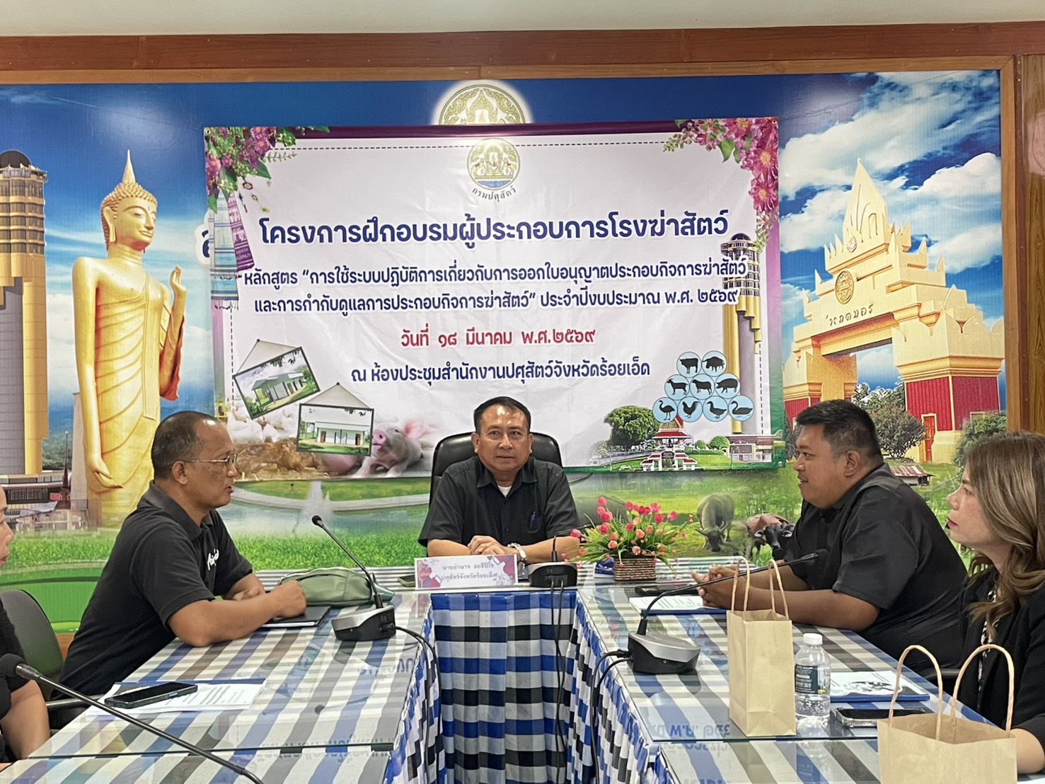 วันที่ 18 มีนาคม 2569 นายอำนาจ มะธิปิไข ปศุสัตว์จังหวัดร้อยเอ็ด เป็นประธานในการจัดอบรมผู้ประกอบการโรงฆ่าสัตว์ หลักสูตร “การใช้ระบบปฏิบัติการเกี่ยวกับการออกใบอนุญาตประกอบกิจการฆ่าสัตว์และกำกับดูแลการประกอบกิจการฆ่าสัตว์” มีผู้ประกอบการเข้าร่วมทั้งสิ้น 40 ราย ณ ห้องประชุมสำนักงานปศุสัตว์จังหวัดร้อยเอ็ด โดยมีวัตถุประสงค์เพื่อให้ผู้ประกอบการรับทราบและเข้าใจระบบการให้บริการอนุญาตและกำกับดูแลการประกอบกิจการฆ่าสัตว์ของกรมปศุสัตว์ ตลอดจนสามารถใช้งานได้อย่างมีประสิทธิภาพ รวมถึงให้คำแนะนำผู้ประกอบการใบการเตรียมความพร้อมเพื่อรับการตรวจต่ออายุในอนุญาตประกอบกิจการฆ่าสัตว์