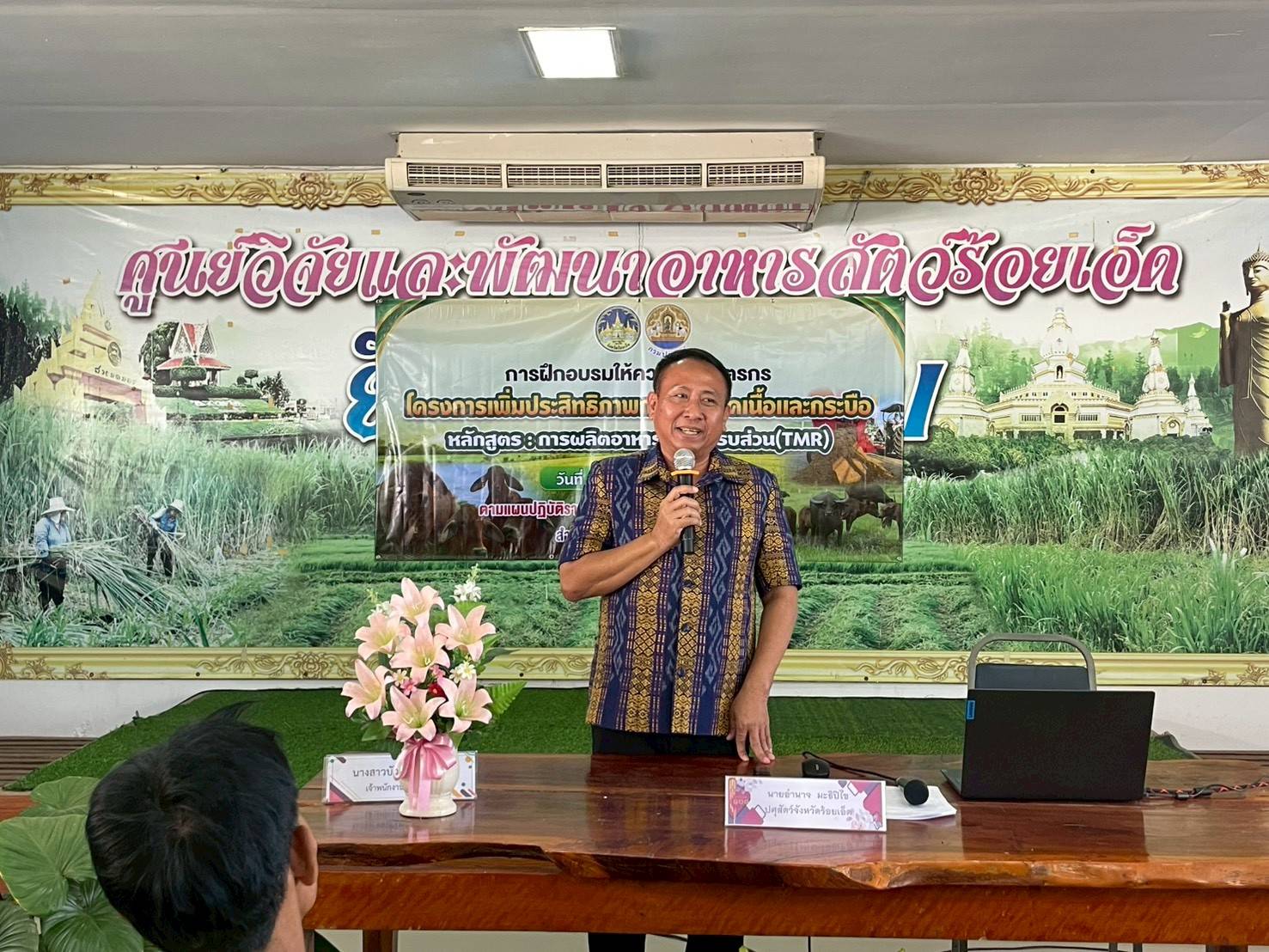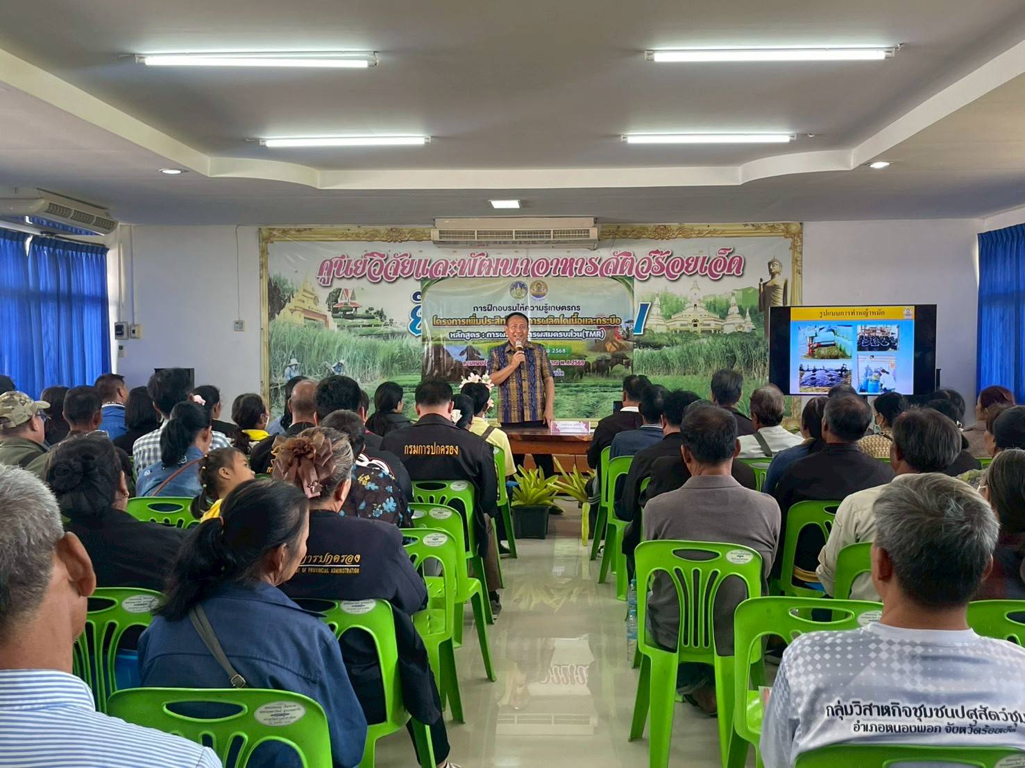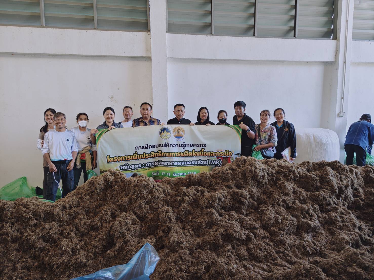 📆วันที่ 18 ธันวาคม 2568📆 นายอำนาจ มะธิปิไข ปศุสัตว์จังหวัดร้อยเอ็ด เป็นประธานเปิดการฝึกอบรมเกษตรกร หลักสูตร การผลิตอาหารผสมครบส่วน (TMR) ตามโครงการเพิ่มประสิทธิภาพการผลิตโคเนื้อและกระบือ ปีงบประมาณ พ.ศ.2569 รุ่นที่ 2 เกษตรเข้ารับการฝึกอบรม จำนวน 10 กลุ่มๆละ 10 คน รวมทั้งหมด 100 คน ณ ห้องประชุมศูนย์วิจัยและพัฒนาอาหารสัตว์ร้อยเอ็ด อำเภอสุวรรณภูมิ จังหวัดร้อยเอ็ด ซึ่งมีวัตถุประสงค์เพื่อถ่ายทอดองค์ความรู้ด้านการจัดการอาหารสัตว์, หลักและวิธีการผลิตอาหารผสมครบส่วน (TMR) พร้อมทั้งสาธิตการผลิตอาหารผสมครบส่วน (TMR) แก่กลุ่มเกษตรกร เพื่อส่งเสริมให้เกษตรกรนำไปประยุกต์ใช้ในฟาร์มเป็นการยกระดับนำไปสู่ระบบฟาร์มที่มีระบบการป้องกันโรค และการเลี้ยงสัตว์ที่เหมาะสม (Good Farming Management ; GFM) ต่อไป
