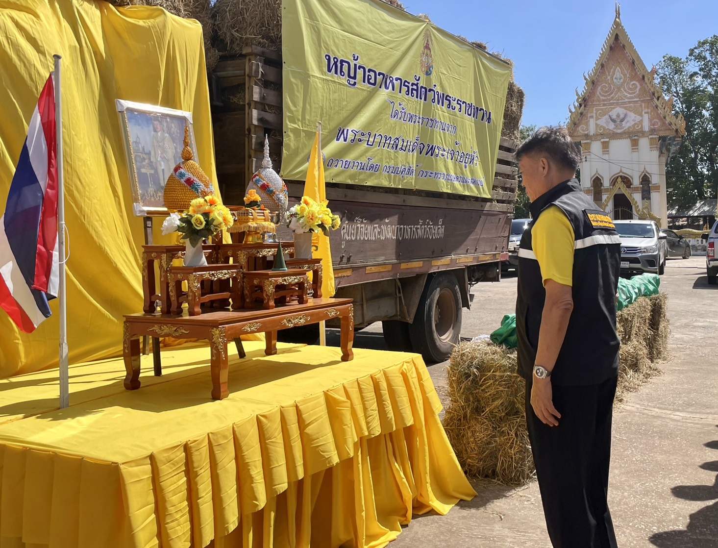 วันที่ 17 ตุลาคม 2568 นายอำนาจ มะธิปิไข ปศุสัตว์จังหวัดร้อยเอ็ด พร้อมด้วยศูนย์วิจัยและพัฒนาอาหารสัตว์ร้อยเอ็ด กลุ่มยุทธศาสตร์และสารสนเทศการปศุสัตว์ และสำนักงานปศุสัตว์อำเภอโพธิ์ชัย มอบหญ้าอาหารสัตว์พระราชทานให้กับเกษตรกรผู้เลี้ยงสัตว์ ในพื้นที่หมู่ 2 , 4 , 5 , 8 , 9 , และ 12 ตำบลสะอาด อำเภอโพธิ์ชัย จังหวัดร้อยเอ็ด เพื่อให้ความช่วยเหลือเกษตรกรผู้เลี้ยงสัตว์ที่ประสบปัญหาอุทกภัยลำน้ำชีเอ่อล้นตลิ่งเข้าท่วมพื้นที่การเกษตรและพื้นที่เลี้ยงสัตว์ โดยได้มอบเสบียงอาหารสัตว์พระราชทาน เป็นหญ้าแห้งอัดฟ่อน จำนวน 200 ฟ่อน และถุงยังชีพสำหรับสัตว์ จำนวน 20 ชุด ซึ่งมีเกษตรกรได้รับผลกระทบด้านปศุสัตว์ เกษตรกรจำนวน 41 ราย โคและกระบือจำนวน 172 ตัว โดยมี ดร.เอกภาพ พลซื่อ โฆษกกระทรวงเกษตรและสหกรณ์ เป็นประธาน ณ วัดสุทัศน์บ้านท่าเสียว ตำบลสะอาด อำเภอโพธิ์ชัย จังหวัดร้อยเอ็ด