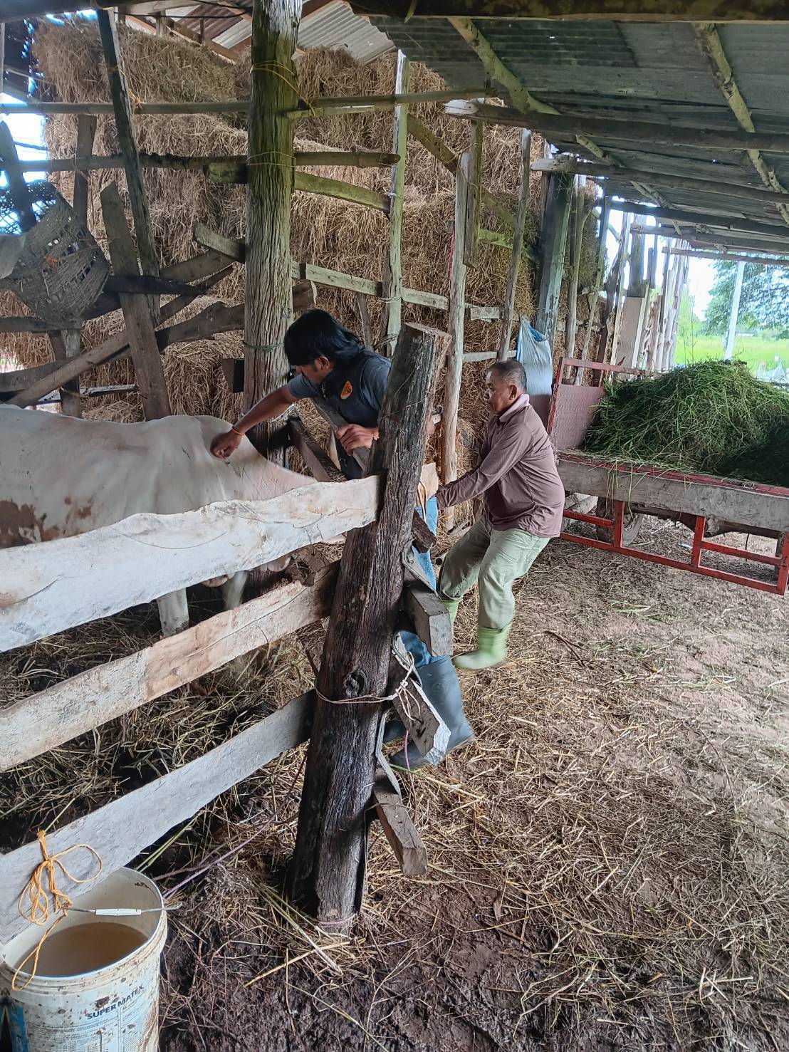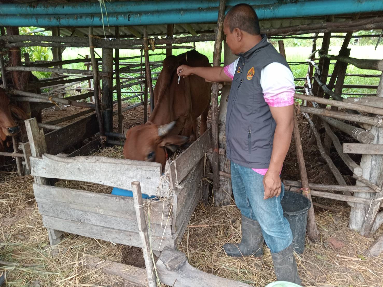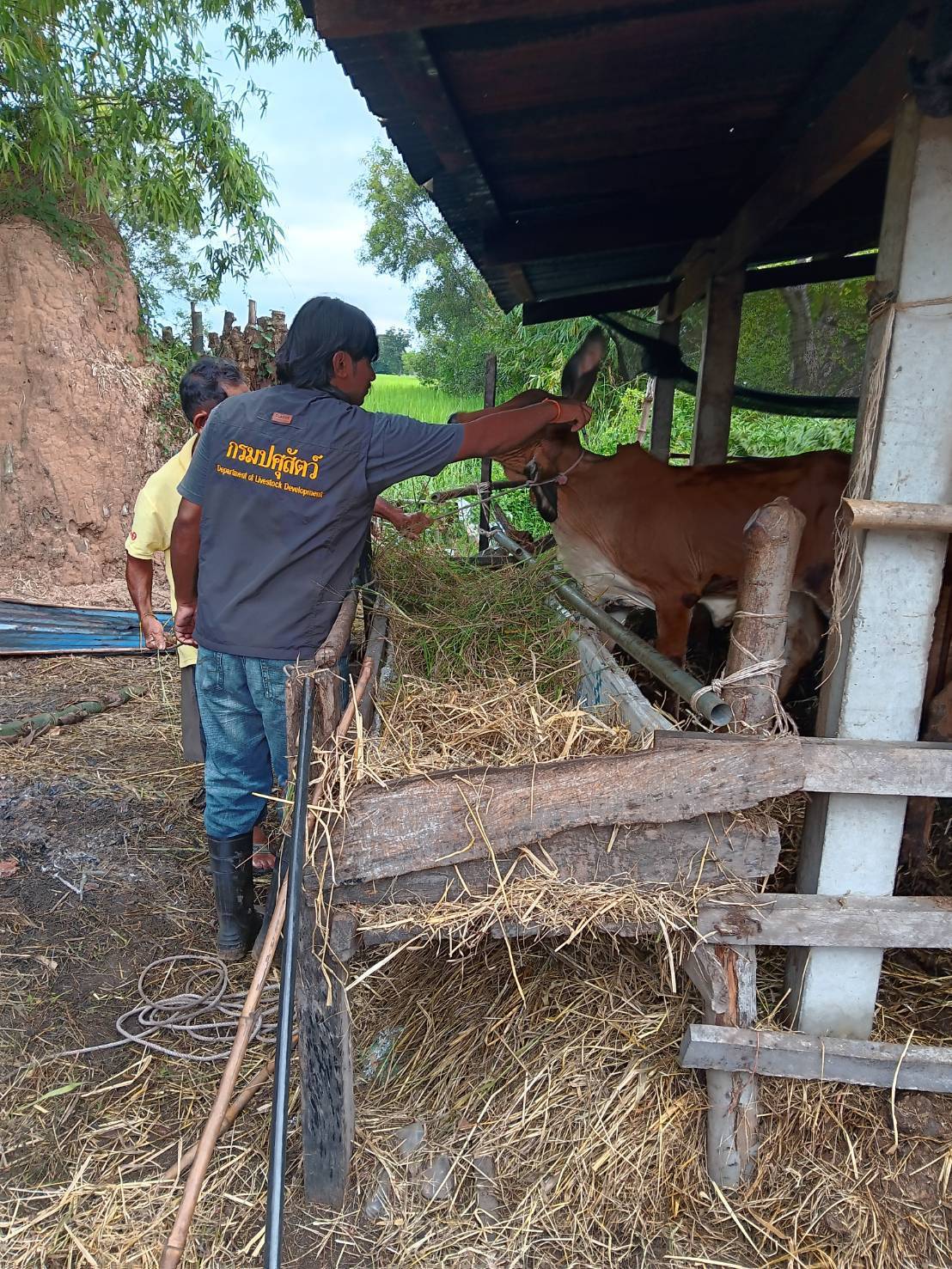 วันที่ 14 ตุลาคม 2568 นายอำนาจ มะธิปิไข ปศุสัตว์จังหวัดร้อยเอ็ด มอบหมายให้สำนักงานปศุสัตว์อำเภอศรีสมเด็จ พร้อมทั้งผู้นำชุมชน และอาสาปศุสัตว์ ออกบริการฉีดวัคซีนป้องกันโรคลัมปีสกินและโรคปากและเท้าเปื่อยในโคเเละกระบือ ในพื้นที่หมู่ที่ 5 ตำบลเมืองเปลือยอำเภอศรีสมเด็จ จังหวัดร้อยเอ็ด เกษตรกรได้รับบริการ 36 ราย โคได้รับวัคซีน 145 ตัว กระบือ 10 ตัว รวมทั้งหมด 155 ตัว และสร้างความรู้ความเข้าใจเกี่ยวกับโรคระบาดสัตว์ การเลี้ยงสัตว์ให้มีสุขภาพดีและเน้นย้ำระบบการป้องกันโรค พร้อมกำชับผู้นำชุมชน หากมีสัตว์ป่วยตายผิดปกติให้แจ้งเจ้าหน้าที่ปศุสัตว์ทันที