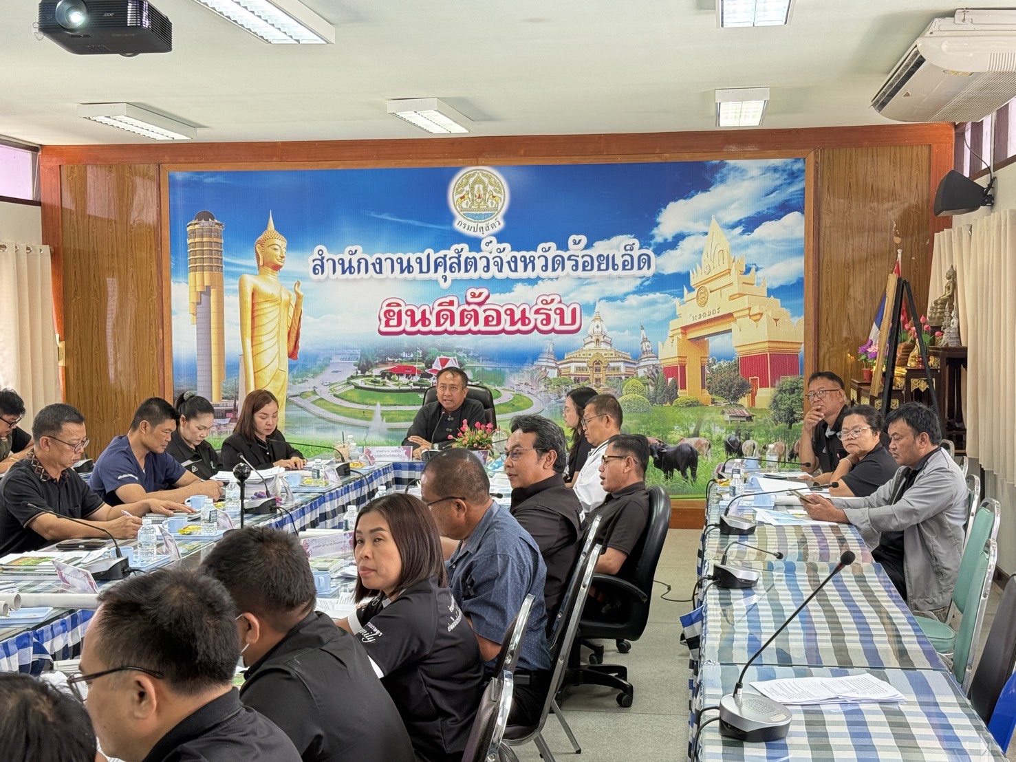 วันที่ 31 มีนาคม 2569 สำนักงานปศุสัตว์จังหวัดร้อยเอ็ด จัดประชุมประจำเดือนมีนาคม 2569 โดยมีนายอำนาจ มะธิปิไข ปศุสัตว์จังหวัดร้อยเอ็ด เป็นประธานพร้อมด้วยหัวหน้ากลุ่ม/ฝ่าย ปศุสัตว์อำเภอ รวมทั้งข้าราชการและพนักงานราชการ ร่วมประชุมรายงานผลการดำเนินงานในเดือนมีนาคม 2569 พร้อมทั้งชี้แจงงานต่าง ๆ ของทางกลุ่ม/ฝ่าย สำนักงานปศุสัตว์จังหวัดร้อยเอ็ด ให้ทางสำนักงานปศุสัตว์อำเภอได้รับทราบและถือปฏิบัติตามข้อสั่งการ ณ ห้องประชุมชั้น 2 สำนักงานปศุสัตว์จังหวัดร้อยเอ็ด