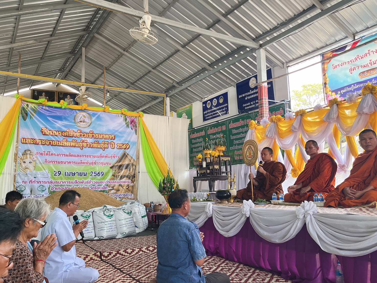ณ ที่ทำการกลุ่มธนาคารเมล็ดพันธุ์ข้าวชุมชน ตำบลหนองแคน อำเภอปทุมรัตต์ จังหวัดร้อยเอ็ด