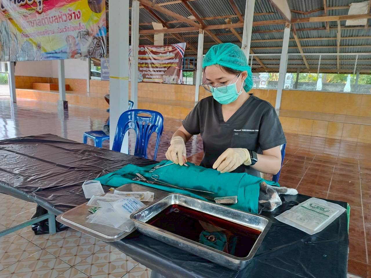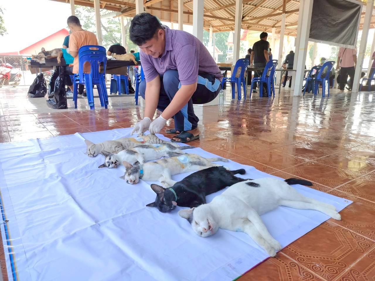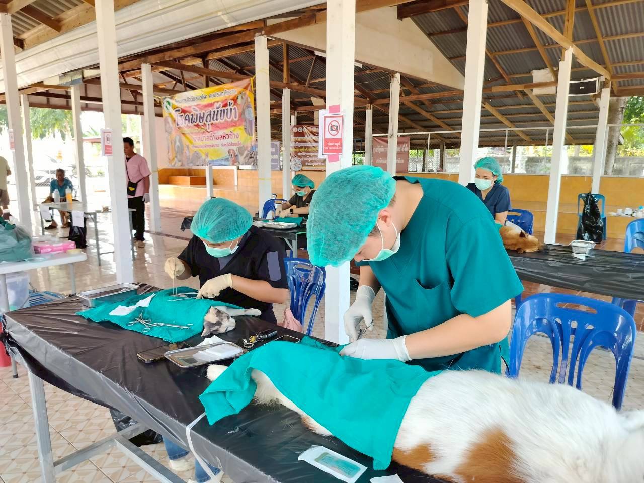 วันที่ 27 เมษายน 2569 นายอำนาจ มะธิปิไข ปศุสัตว์จังหวัดร้อยเอ็ด มอบหมายให้สำนักงานปศุสัตว์อำเภอจตุรพักตรพิมาน พร้อมด้วยสำนักงานปศุสัตว์อำเภอเกษตรวิสัย อำเภอสุวรรณภูมิ อำเภอทุ่งเขาหลวง และอำเภอศรีสมเด็จ ร่วมกับเทศบาลตำบลหัวช้าง ออกปฏิบัติงานผ่าตัดทำหมันให้กับสุนัขและแมว ณ วัดโพธิ์ทอง บ้านหนองตอ ต.หัวช้าง อ.จตุรพักตรพิมาน จ.ร้อยเอ็ด ผลการดำเนินงานผ่าตัดทำหมัน สุนัข 22 ตัว แมว 8 ตัว รวมทั้งสิ้น 30 ตัว พร้อมทั้งฉีดวัคซีนป้องกันโรคพิษสุนัขบ้าในสุนัขและแมวในพื้นที่ ต.หัวช้าง อ.จตุรพักตรพิมาน จ.ร้อยเอ็ด ภายใต้โครงการสัตว์ปลอดโรค คนปลอดภัย จากโรคพิษสุนัขบ้า ตามพระปณิธานของศาสตราจารย์ ดร. สมเด็จเจ้าฟ้าฯ กรมพระศรีสวางควัฒน วรขัตติยราชนารี โดยได้รับการสนับสนุนจากเทศบาลตำบลหัวช้างและผู้นำชุมชนเป็นอย่างดี