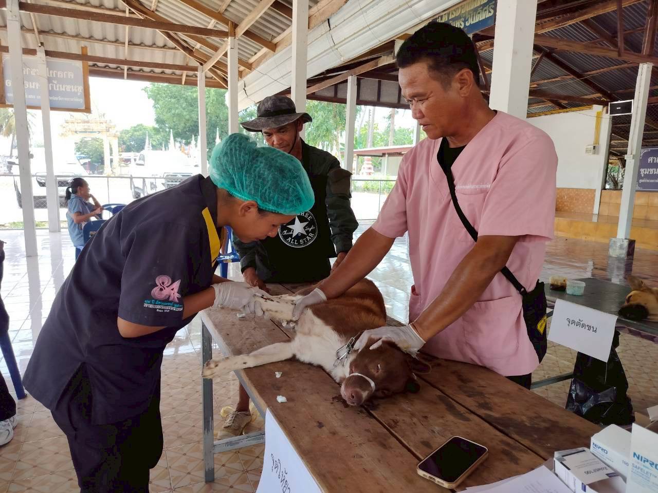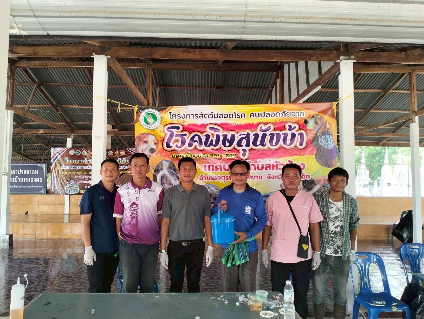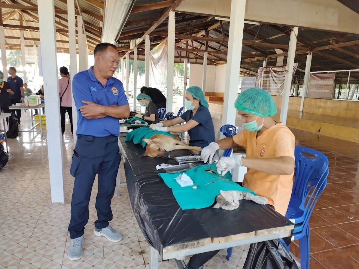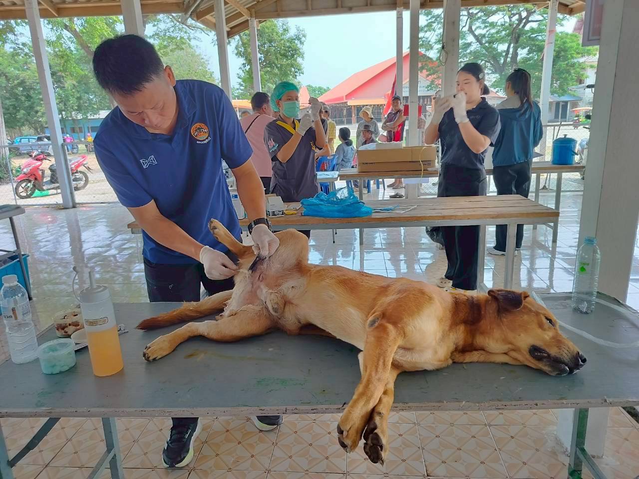 วันที่ 27 เมษายน 2569 นายอำนาจ มะธิปิไข ปศุสัตว์จังหวัดร้อยเอ็ด มอบหมายให้สำนักงานปศุสัตว์อำเภอจตุรพักตรพิมาน พร้อมด้วยสำนักงานปศุสัตว์อำเภอเกษตรวิสัย อำเภอสุวรรณภูมิ อำเภอทุ่งเขาหลวง และอำเภอศรีสมเด็จ ร่วมกับเทศบาลตำบลหัวช้าง ออกปฏิบัติงานผ่าตัดทำหมันให้กับสุนัขและแมว ณ วัดโพธิ์ทอง บ้านหนองตอ ต.หัวช้าง อ.จตุรพักตรพิมาน จ.ร้อยเอ็ด ผลการดำเนินงานผ่าตัดทำหมัน สุนัข 22 ตัว แมว 8 ตัว รวมทั้งสิ้น 30 ตัว พร้อมทั้งฉีดวัคซีนป้องกันโรคพิษสุนัขบ้าในสุนัขและแมวในพื้นที่ ต.หัวช้าง อ.จตุรพักตรพิมาน จ.ร้อยเอ็ด ภายใต้โครงการสัตว์ปลอดโรค คนปลอดภัย จากโรคพิษสุนัขบ้า ตามพระปณิธานของศาสตราจารย์ ดร. สมเด็จเจ้าฟ้าฯ กรมพระศรีสวางควัฒน วรขัตติยราชนารี โดยได้รับการสนับสนุนจากเทศบาลตำบลหัวช้างและผู้นำชุมชนเป็นอย่างดี