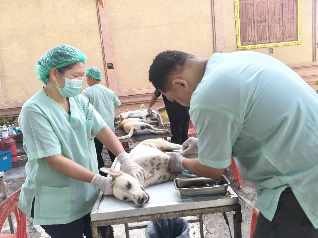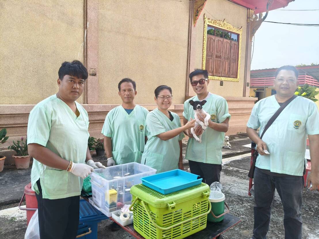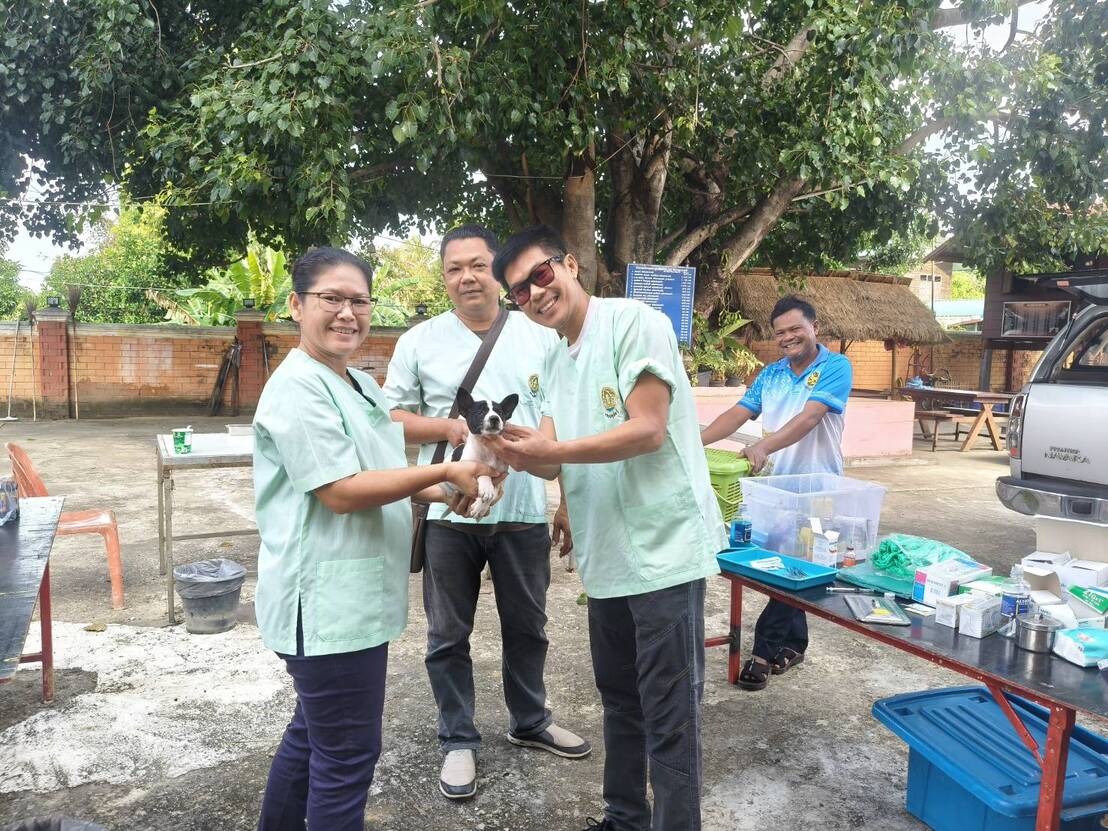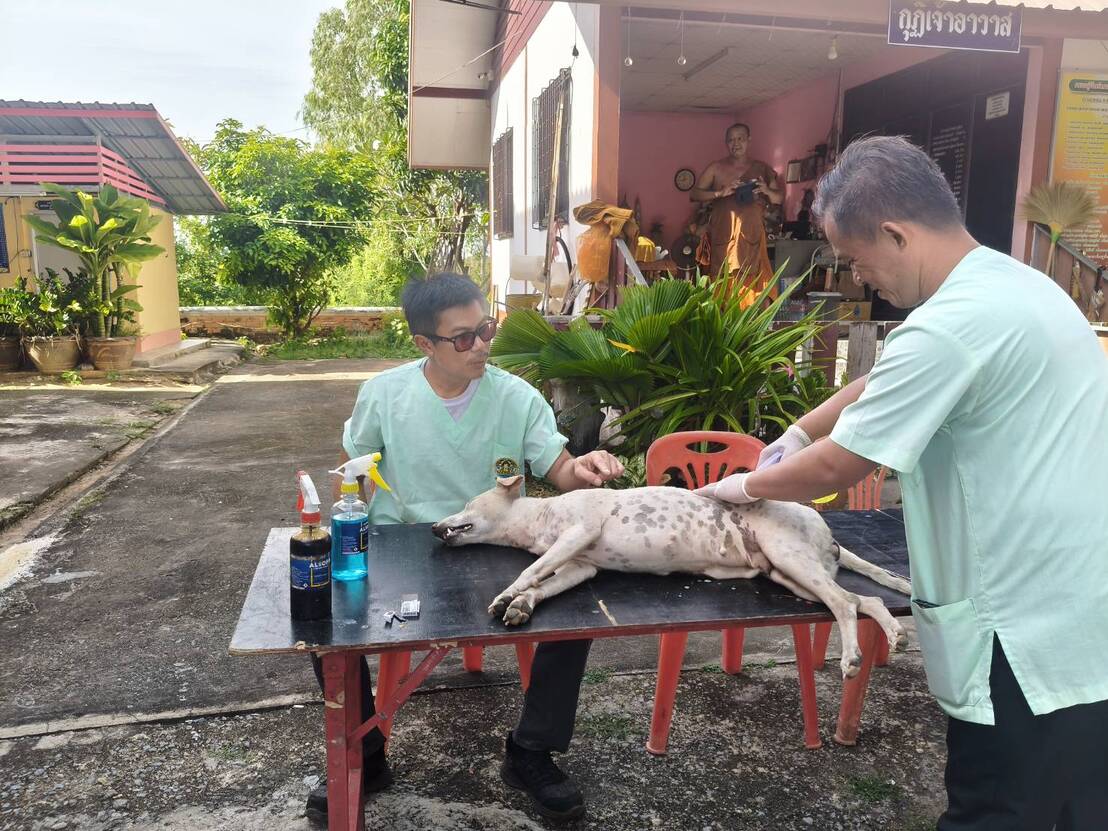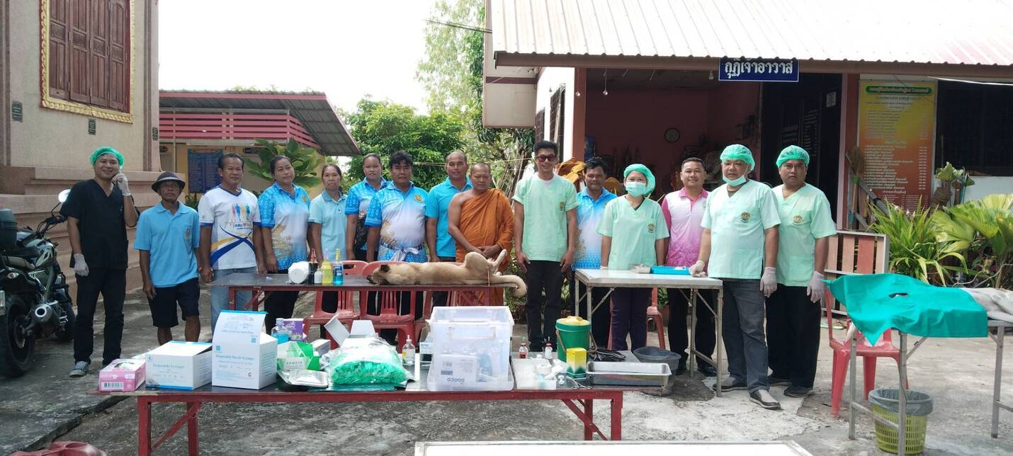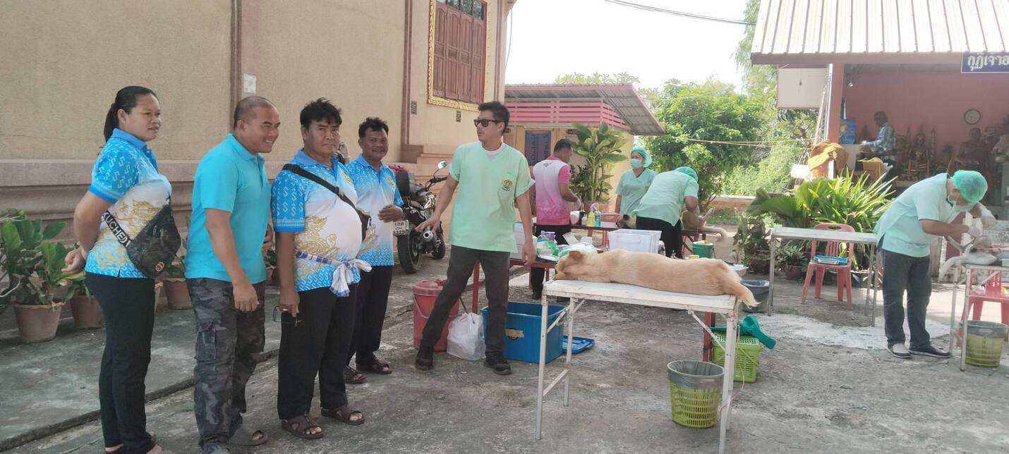 วันที่ 22 ตุลาคม 2568 นายอำนาจ มะธิปิไข ปศุสัตว์จังหวัดร้อยเอ็ดมอบหมายให้สำนักงานปศุสัตว์อำเภอเสลภูมิออกหน่วยบริการเคลื่อนที่ให้บริการผ่าตัดทำหมันสุนัขและแมว ให้วัดตาลตะนาวศรี บ้านสะทอน ตำบลขวาว อำเภอเสลภูมิ จังหวัดร้อยเอ็ด สุนัขและแมว ได้รับการผ่าตัดทำหมันและฉีดวัคซีนป้องกันโรคพิษสุนัขบ้า จำนวน 12 ตัว