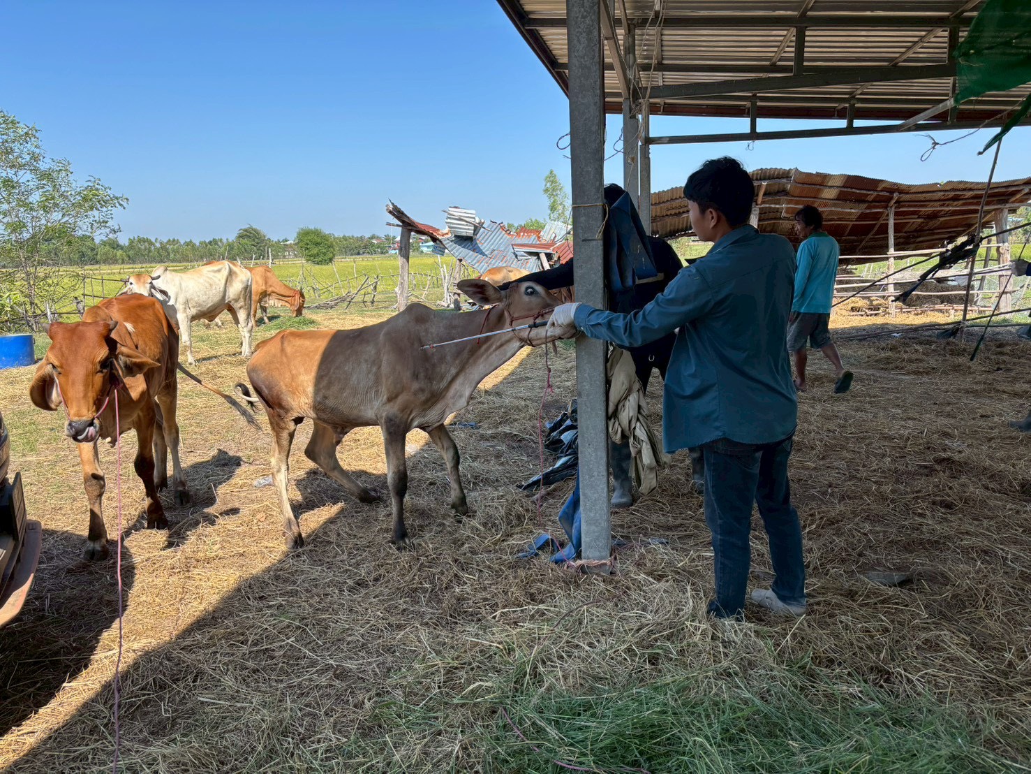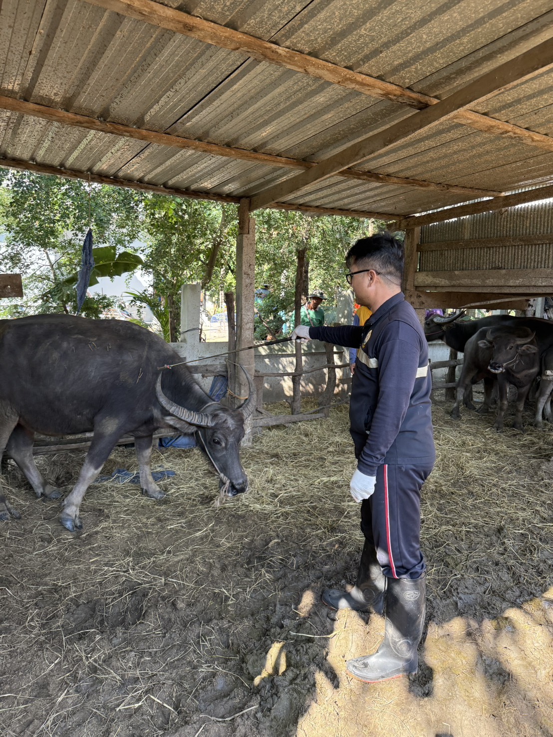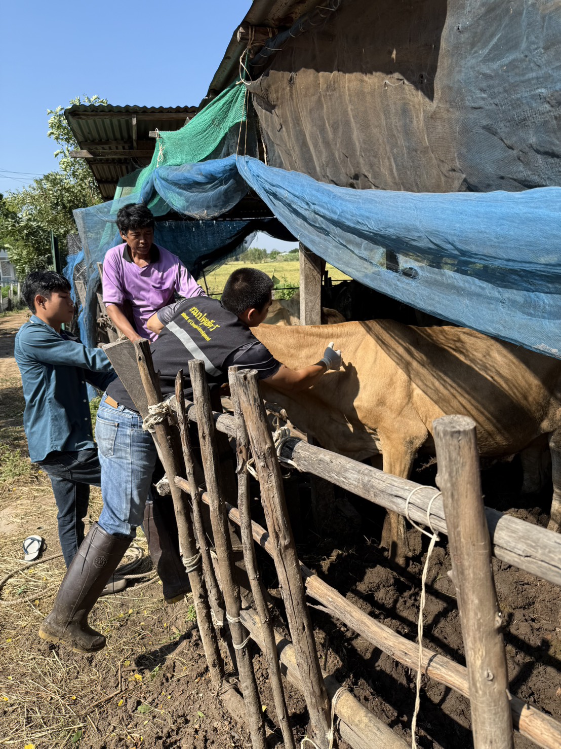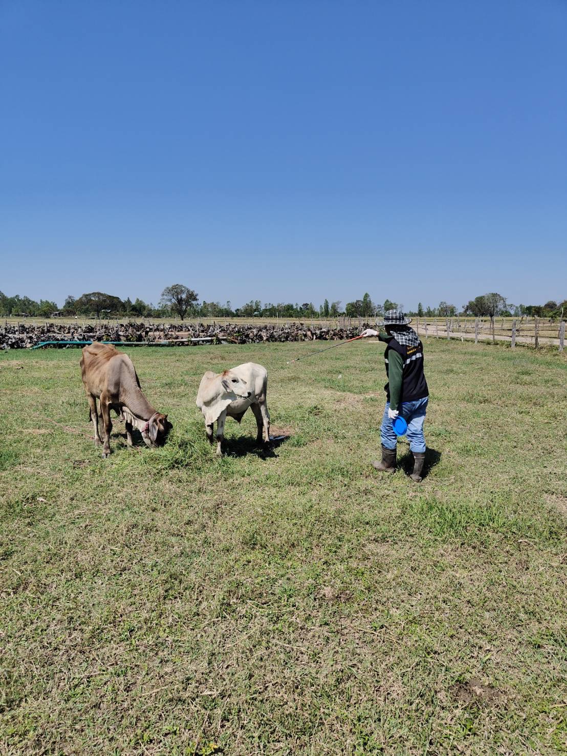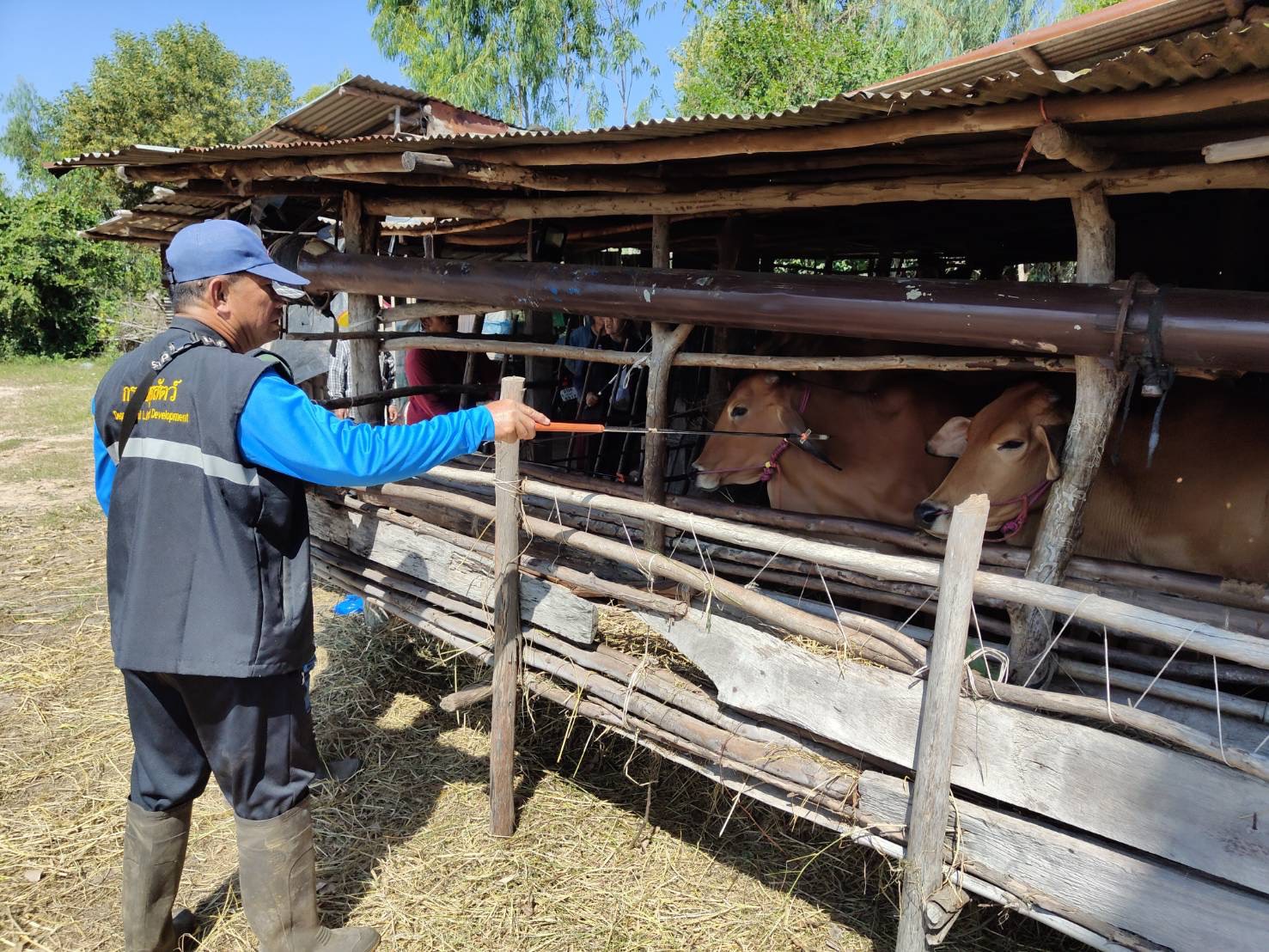 วันที่ 14 พฤศจิกายน 2568 นายอำนาจ มะธิปิไข ปศุสัตว์จังหวัดร้อยเอ็ด มอบหมายให้สำนักงานปศุสัตว์อำเภอเกษตรวิสัย อาสาปศุสัตว์ พร้อมทั้งผู้นำชุมชน ออกบริการฉีดวัคซีนป้องกันโรคเฮโมรายิกเซปทิซีเมีย(โรคคอบวม) และโรคปากและเท้าเปื่อย ในโคในพื้นที่หมู่ที่ 4 และ 10 ตำบลทุ่งทอง อำเภอเกษตรวิสัย จังหวัดร้อยเอ็ด เกษตรกรได้รับบริการทั้งหมด 37 ราย โคได้รับวัคซีน 192 ตัว กระบือได้รับวัคซีน 77 ตัว รวมสัตว์ได้รับวัคซีนทั้งหมด 269 ตัว