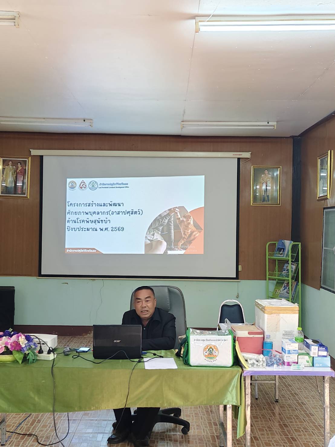วันที่ 22 มกราคม 2569 ดร.สุวัฒน์ มัตราช ปศุสัตว์จังหวัดเลย มอบหมายให้สำนักงานปศุสัตว์อำเภอด่านซ้าย ดำเนินการจัดฝึกอบรม โครงการสร้างและพัฒนาศักยภาพบุคคลากร (อาสาปศุสัตว์) ด้านโรคพิษสุนัขบ้า ให้แก่ อปท.ทั้ง 11 แห่ง จำนวน 16 ราย โดยให้ความรู้แก่อาสาปศุสัตว์ในเรื่องโรคพิษสุนัขบ้า/วิธีการฉีดวัคซีน/การเก็บรักษาคุณภาพวัคซีน/การจับบังคับสัตว์ และการควบคุมโรคในพื้นที่ เพื่อผลิตอาสาปศุสัตว์ทั้งรุ่นใหม่และรุ่นเก่า ให้มีความรู้ มีประสิทธิภาพ และมีทักษะในการปฏิบัติงาน ณ ห้องประชุมศูนย์พัฒนาปศุสัตว์ตามพระราชดำริ ตำบลด่านซ้าย อำเภอด่านซ้าย จังหวัดเลย