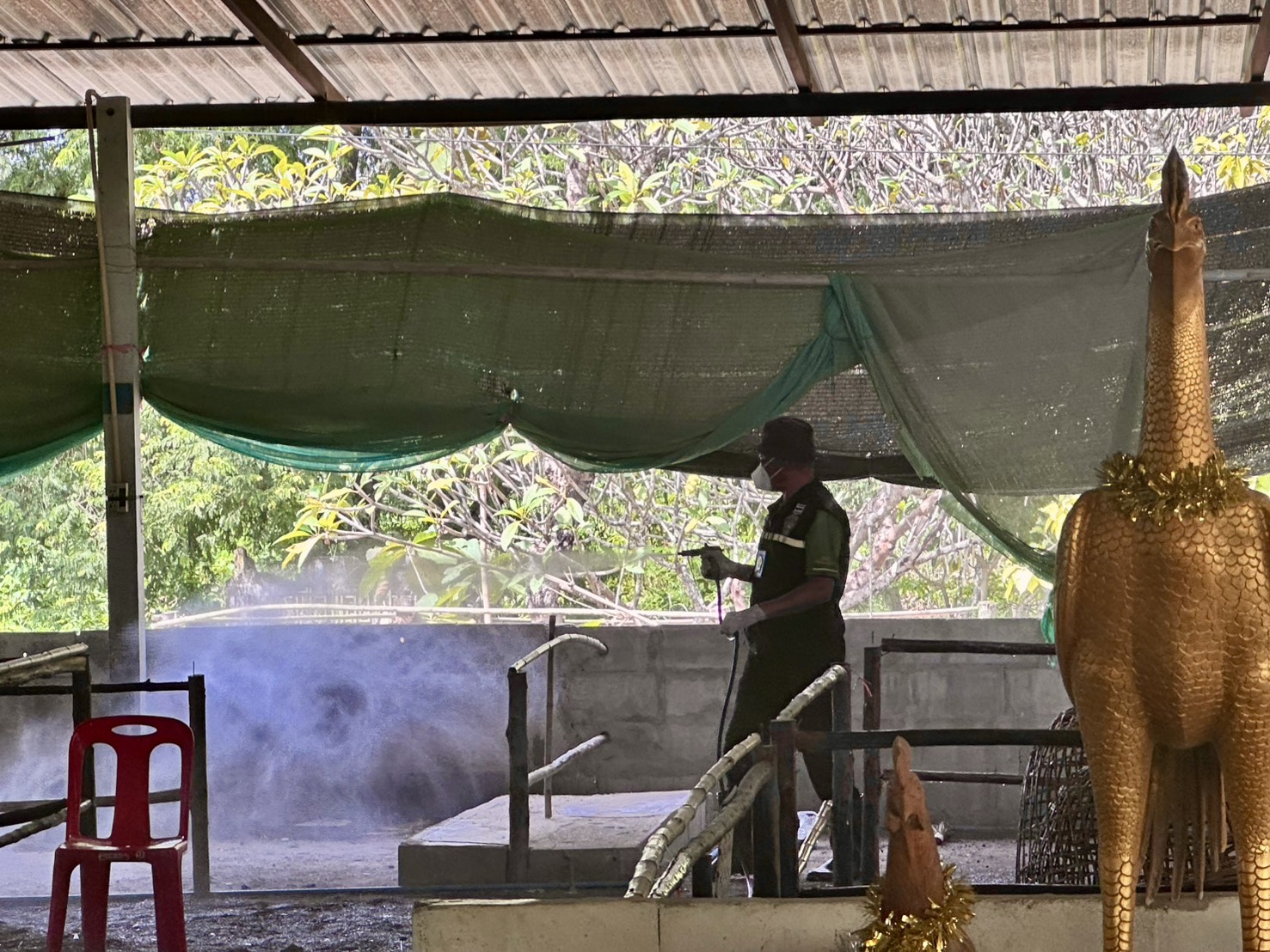 วันที่ 22 ตุลาคม พ.ศ.2568 สำนักงานปศุสัตว์อำเภอเอราวัณ ร่วมกับด่านกักกันสัตว์เลย ออกให้บริการพ่นยาฆ่าเชื้อโครงการรณรงค์ทำความสะอาด และทำลายเชื้อโรคไข้หวัดนกในพื้นที่เสี่ยง ครั้งที่ 1 ประจำปีงบประมาณ 2569 ณ สนามไก่ชนเพชรเมืองเลย เลขที่ 159 ม.8 บ้านพรประเสริฐ ตำบลเอราวัณ อำเภอเอราวัณ จังหวัดเลย