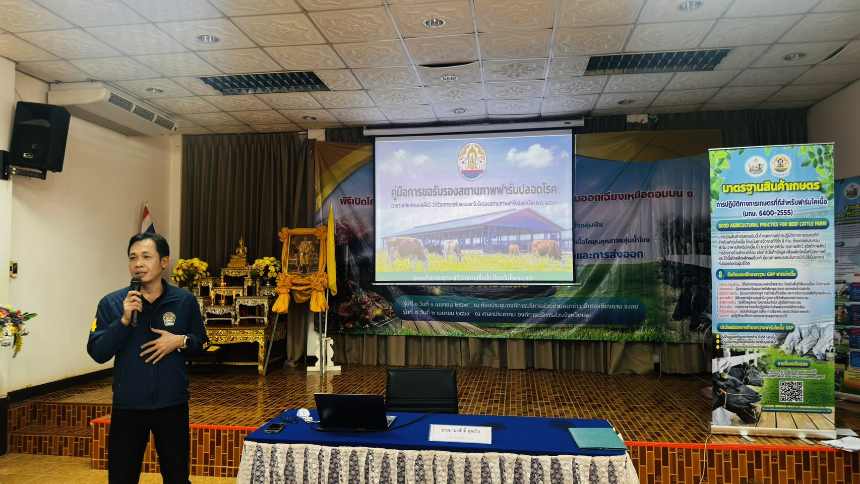 วันที่ 1 เมษายน 2569 เวลา 09.00 น. ณ ห้องประชุมองค์การบริหารส่วนตำบลนาซ่าว อำเภอเชียงคาน จังหวัดเลย นายสัตวแพทย์อภิชัย นาคีสังข์ ปศุสัตว์จังหวัดเลย มอบหมายให้กลุ่มยุทธศาสตร์และสารสนเทศการปศุสัตว์ จัดฝึกอบรมเกษตรกร หลักสูตร “การพัฒนามาตรฐานการผลิตโคเนื้อและการส่งออก” ซึ่งเป็นส่วนหนึ่งของแผนปฏิบัติราชการกลุ่มจังหวัดภาคตะวันออกเฉียงเหนือตอนบน 1 ประจำปีงบประมาณ พ.ศ. 2569 โดยมีเกษตรกรผู้เลี้ยงโคเนื้อในพืันที่ อ.เชียงคาน 110 ราย, ท่าลี่ 23 ราย, นาแห้ว 10 ราย, ปากชม 26 ราย, ภูเรือ 6 ราย, ด่านซ้าย 5 ราย จำนวน 180 ราย