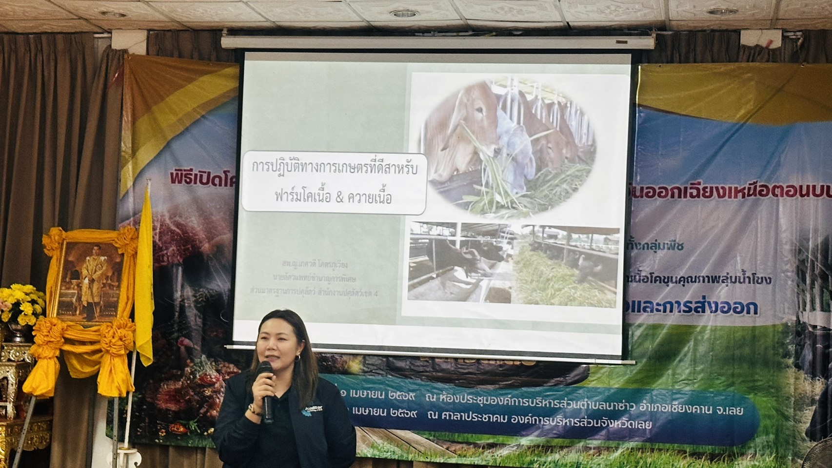โดยได้เน้นย้ำให้เกษตรกร ผู้ประกอบการ และเจ้าหน้าที่ที่เข้าร่วมรับการอบรม นำความรู้และแนวทางปฏิบัติที่ได้รับไปปรับปรุงฟาร์มและกระบวนการแปรรูป เพื่อยกระดับอุตสาหกรรมโคเนื้อของไทยให้เติบโตอย่างยั่งยืนต่อไป โดยมีนางอุราพร แดงสีดา รองนายกองค์การบริหารส่วนตำบลนาซ่าว เป็นประธานในพิธีเปิดโครงการฝึกอบรม ดังกล่าวฯ