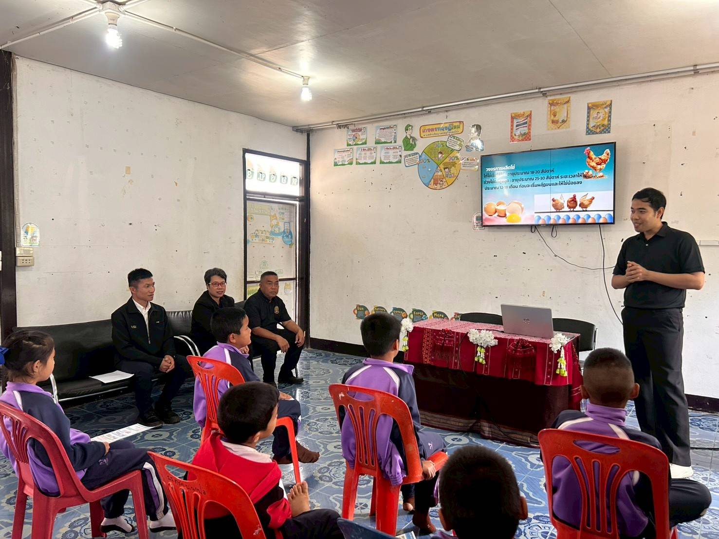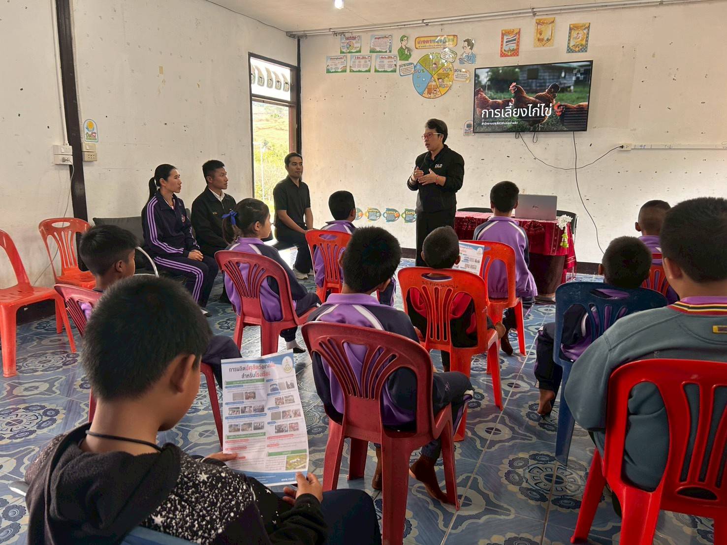 วันที่ 25 กุมภาพันธ์ พ.ศ.2569 เวลา 09.00 น. นายสุวัฒน์ มัตราช ปศุสัตว์จังหวัดเลย มอบหมายให้นางสาวอาทิยา แปลงใจ หัวหน้า กลุ่มส่งเสริมและพัฒนาการปศุสัตว์ ร่วมกับนายสุรชาติ สิทธิศักดิ์ ปศุสัตว์อำเภอภูกระดึง รักษาราชการแทนปศุสัตว์อำเภอนาแห้ว พร้อมด้วย ทีมงาน ลงพื้นเพื่อฝึกอบรมอาจารย์และนักเรียนในโครงการพัฒนาเด็กในถิ่นทุรกันดาร ประจำปีงบประมาณ พ.ศ. 2569 ณ โรงเรียนตำรวจตระเวนชายแดนบ้านนาปอ ตำบลแสงภา อำภอนาแห้ว จังหวัดเลย โดยมีอาจารย์ จำนวน 7 ราย และเด็กนักเรียน จำนวน 21 ราย ซึ่งให้ความรู้ด้านการเลี้ยงสัตว์ การป้องกันโรค และการทำวัคซีนในสัตว์ปีก